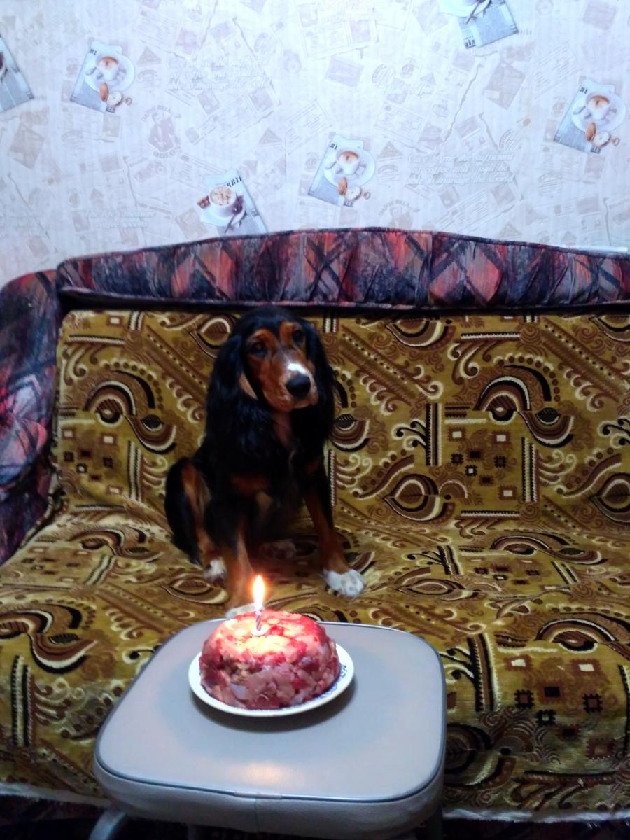 Какой серьёзный парень (сидит на диване перед тортом (из чего?) и ... только и ждёт команды "Пиль" - "Вперёд" - "Можно"