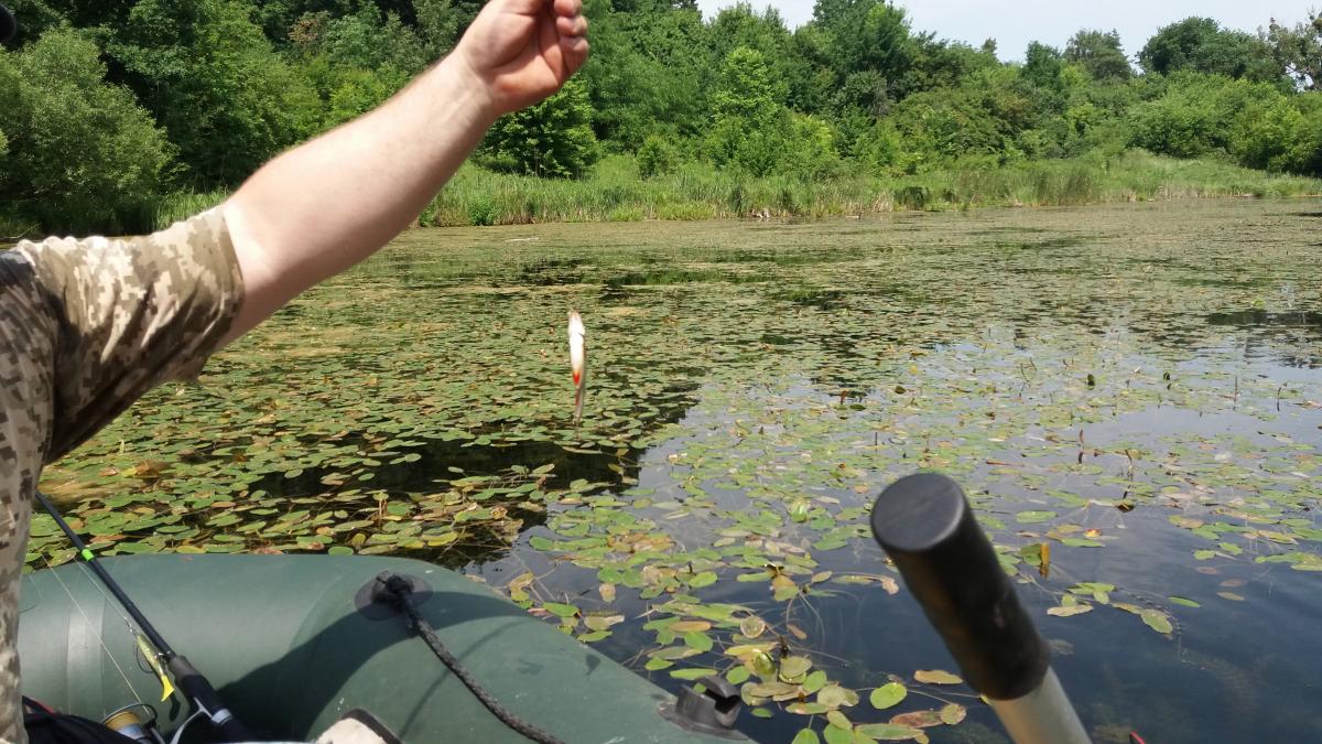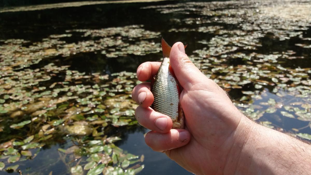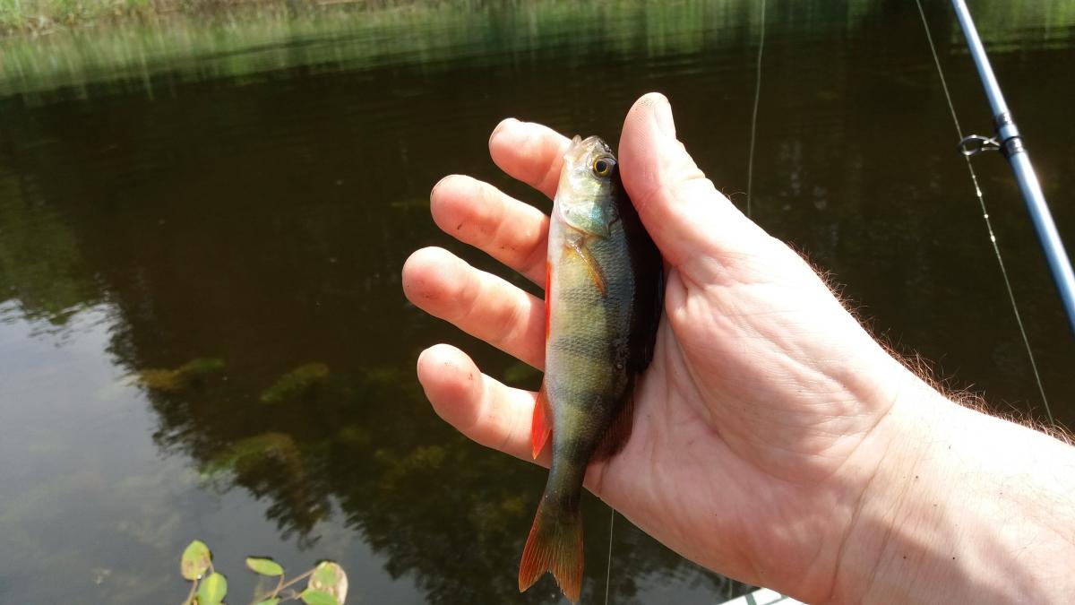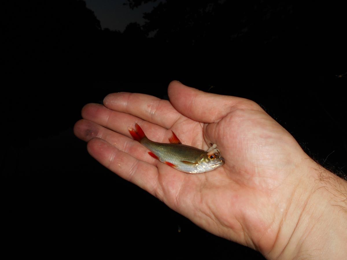 Неспехом добрёл до последнего пруда, на котором решил половить краснопёрку, а если повезёт, то и карася. Скажу сразу, карась мне не попался на этот раз, а краснопёрка ловилась исправно. Самый хороший клёв начался под вечер. Всю рыбу не фоткал, так как она вся стандартного размера как на фото +-.