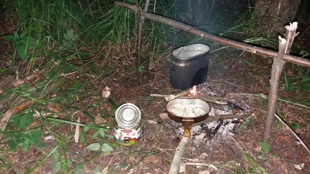 Ловил до тех пор, пока мог отслеживать движение поплавка. Собирался уже в потёмках при свете костра