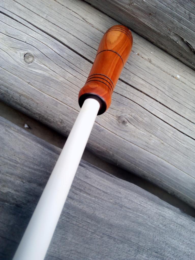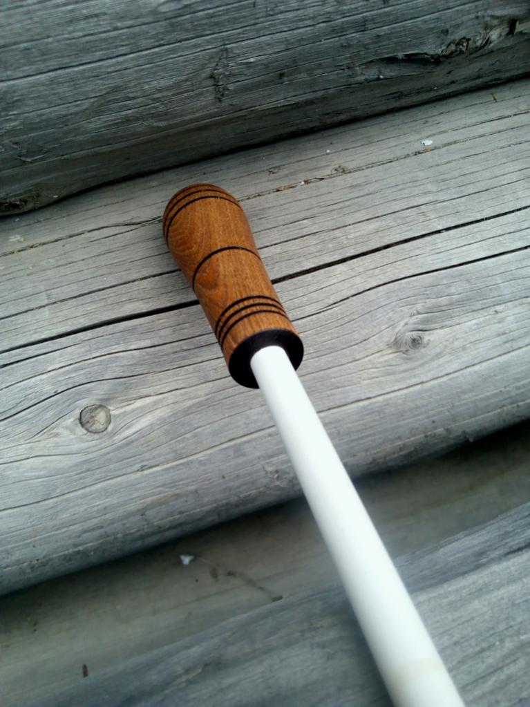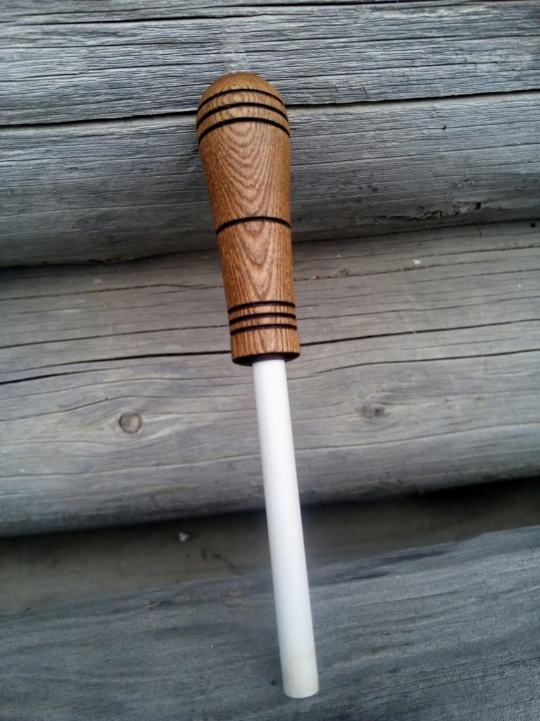 "ножны" из дерева с отверстием под стержень, поверх кожа.
