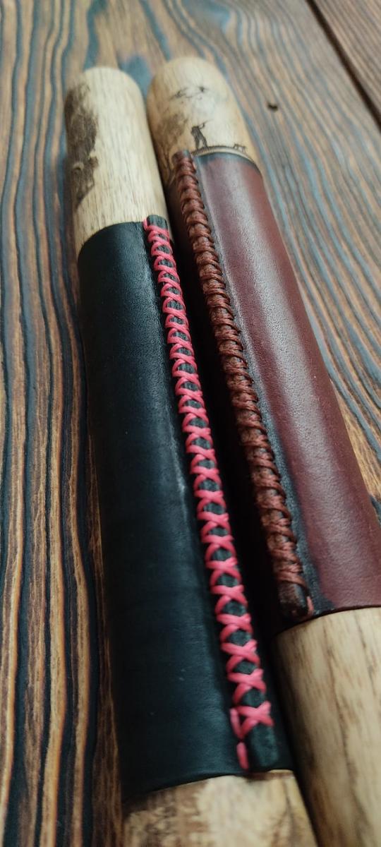 Натуральная кожа, вощеная нить, масла/воски.