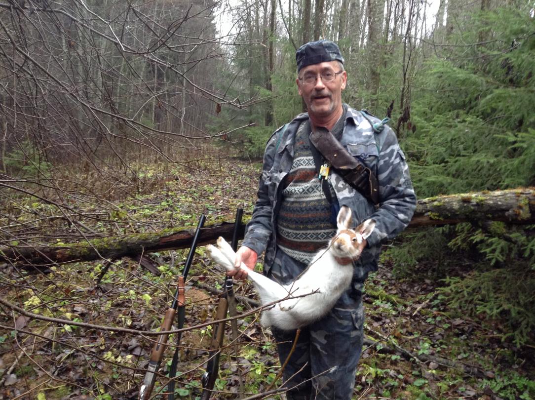 Приглашаю всех принять участие в охоте на зайца. Провожу охоту без собаки, рассказываю о повадках, показываю излюбленные зайцем места, объясняю принципы тропления зайца. Даю необходимые навыки для самостоятельной охоты на зайца. Ниже фото с одной из проведенных мною на днях охоты. Клиент попросил не выкладывать его фото, поэтому прилагаю с трофеем свое фото.