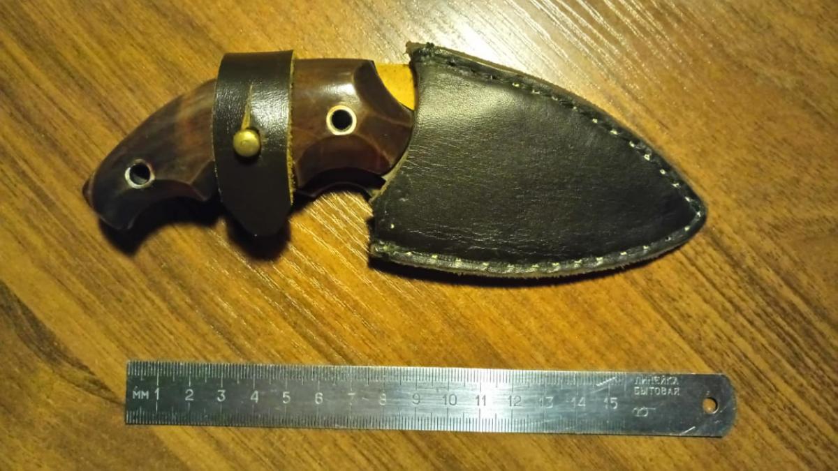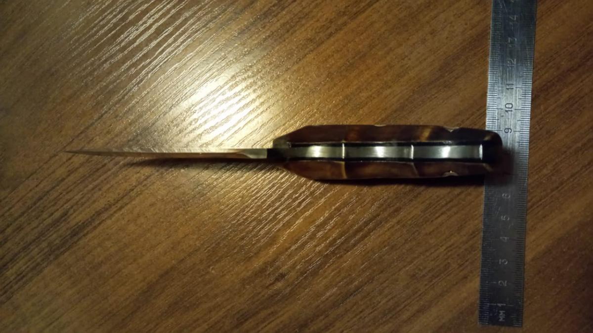 Не плохой нож. Какого мастера не помню, но не магазинный ширпотреб.