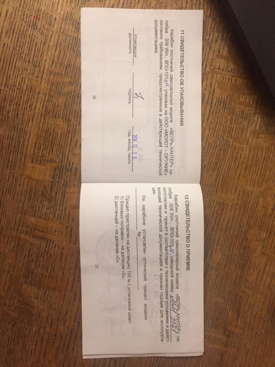 1. Модель ружья: Вепрь- Хантер 101 М