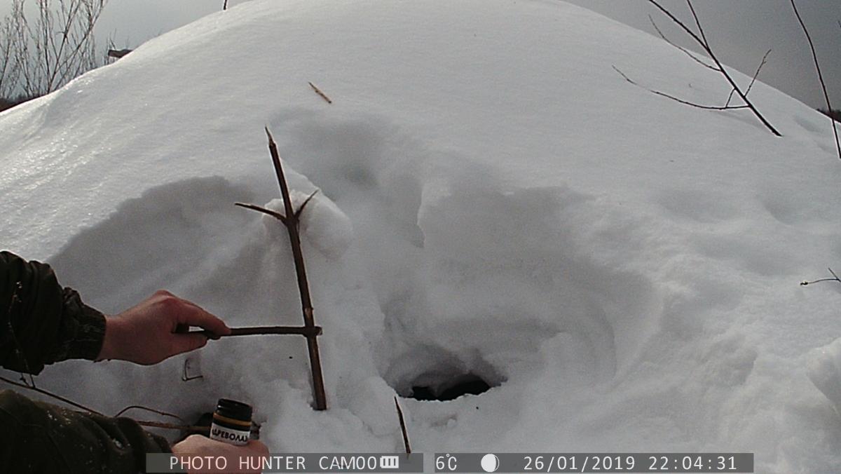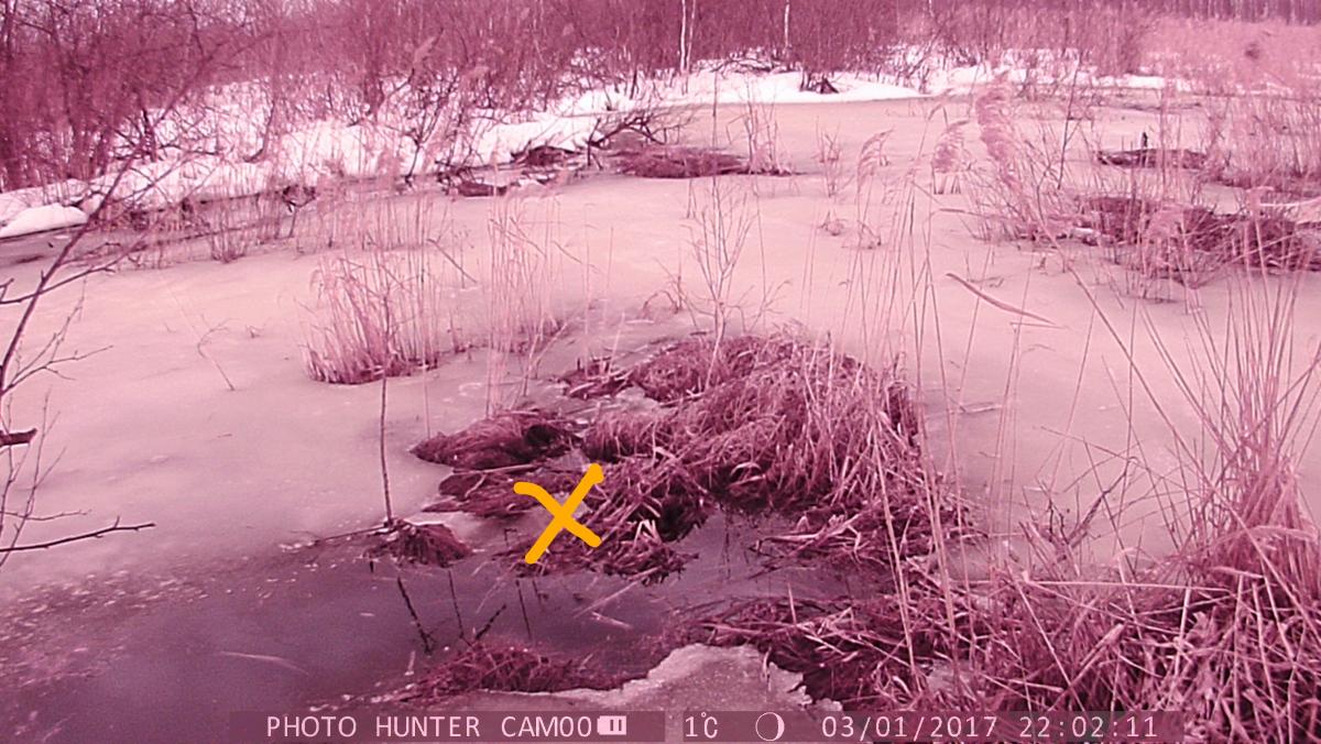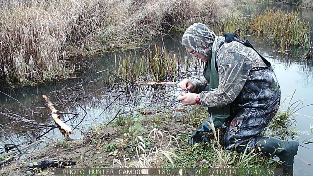 Показаны способы постановки капканов при различном рельефе береговой линии. Представлен обиход охотника-зверолова,