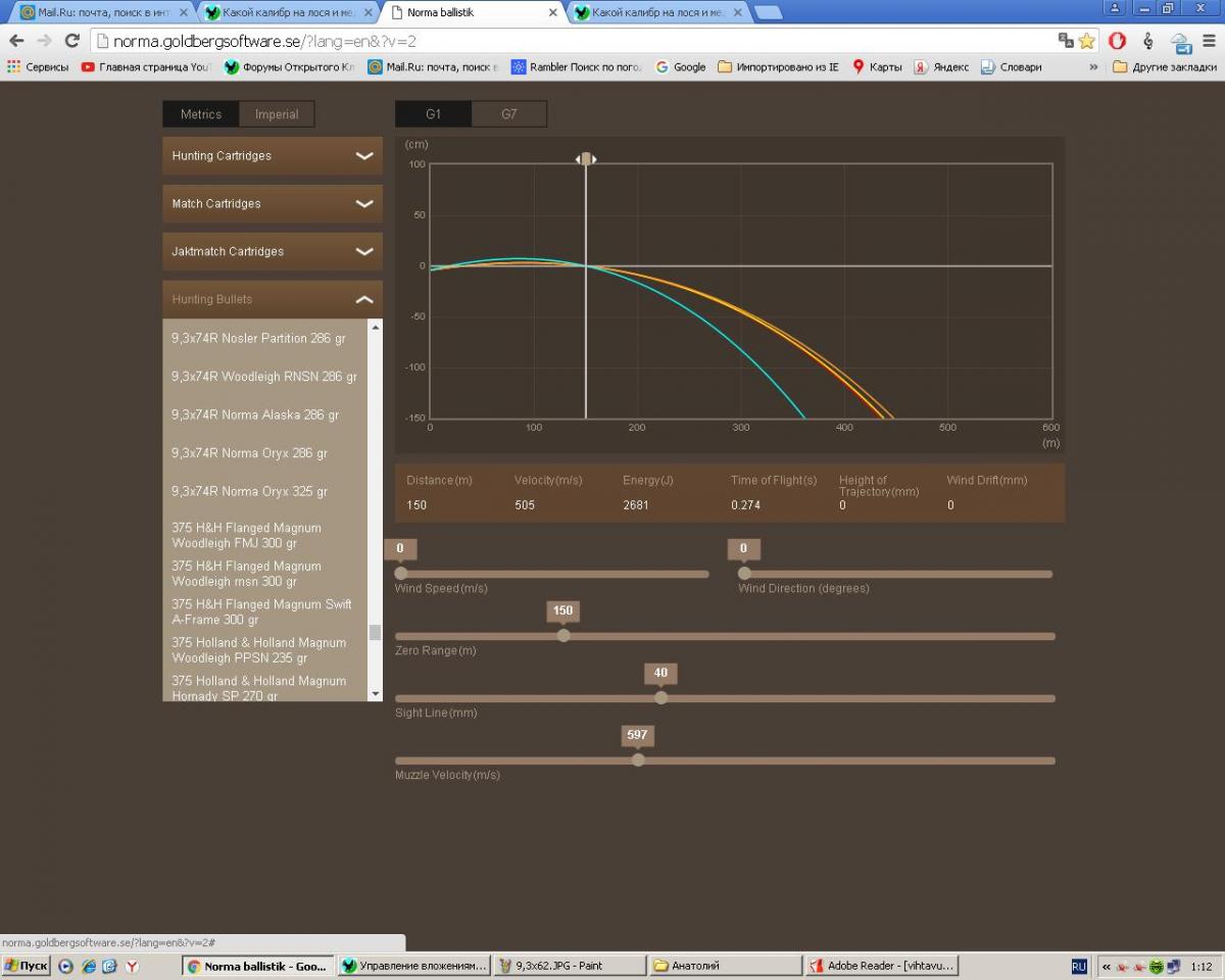 9,3х62 картина по жестче и это правдоподобно , там стартовая скорость ,для ТЯЖЕЛЫХ пуль выше и составляет 630 мысов и на 200 с лишним метрах будет явно меньше 500 ...