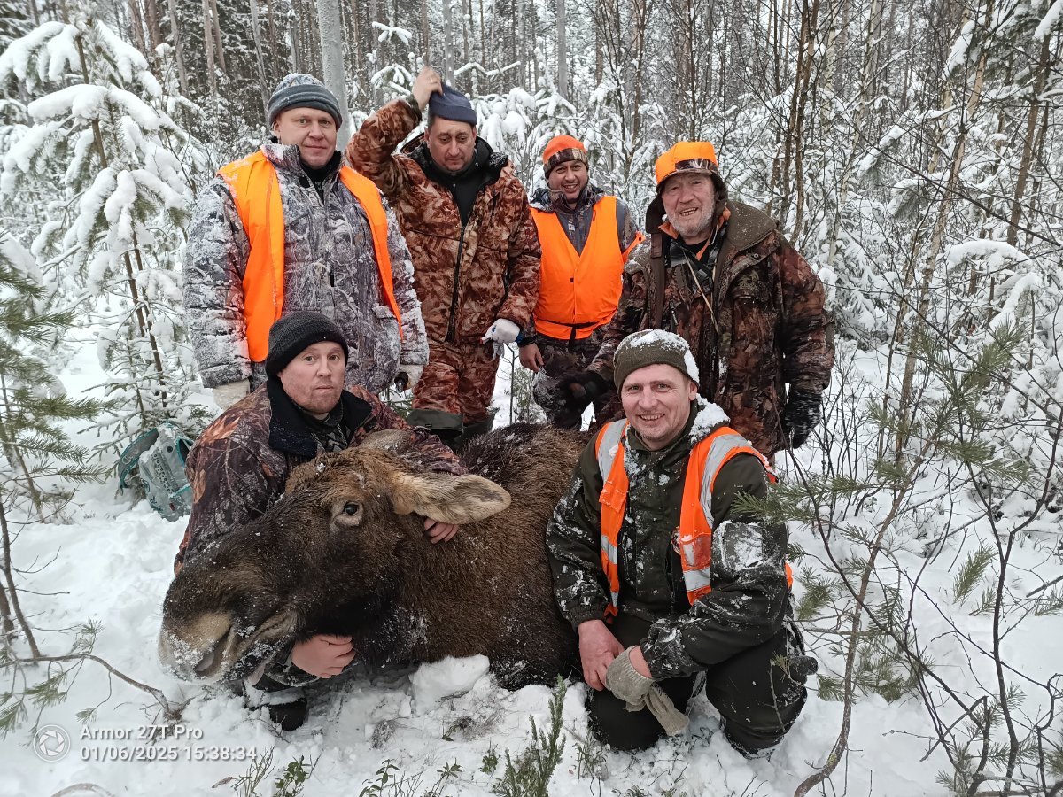 На крайней охоте лось под собакой стоял в ёлках на всех четырех ногах и даже на пинки под жопу не реагировал и хромать к стрелковой отказывался.. пришлось добирать без председателей самому...стрелял лося из 34 тозика, попал в кустах по передней ноге, лось похромал обратно в загон, встал в ельнике недалеко от меня, на крики не реагировал, загон закончили я показал председателю где стоит лось, он подошел и добрал. Нога была перебита чуть ниже коленного сустава.