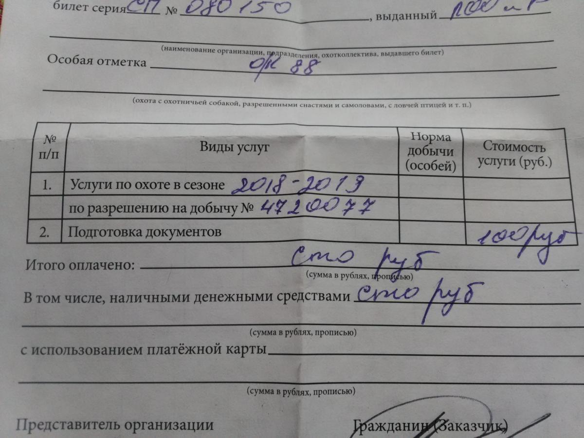 мне отказали в покупки разрешения без приобретения путевки. А это уже закон о защите прав потребителей на моей стороне, а при хорошем Бресте можно и в 159 УК переквалификацировать.