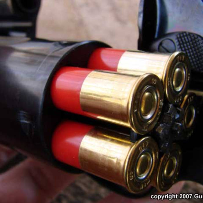 Работает с патронами 45 Сolt и 410. С такими патронами можно и от медведя отбиться: