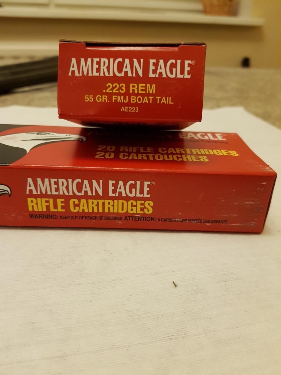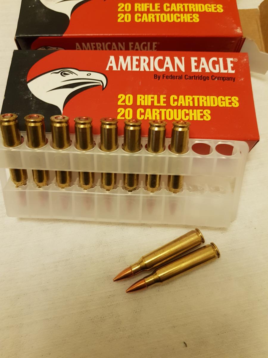 Продам в СПб или обменяю при наличии РОХа патроны AMERICAN EAGLE 223 rem 55GR. FMJ цена 60 руб. шт. в количестве 380 шт. одной партии .