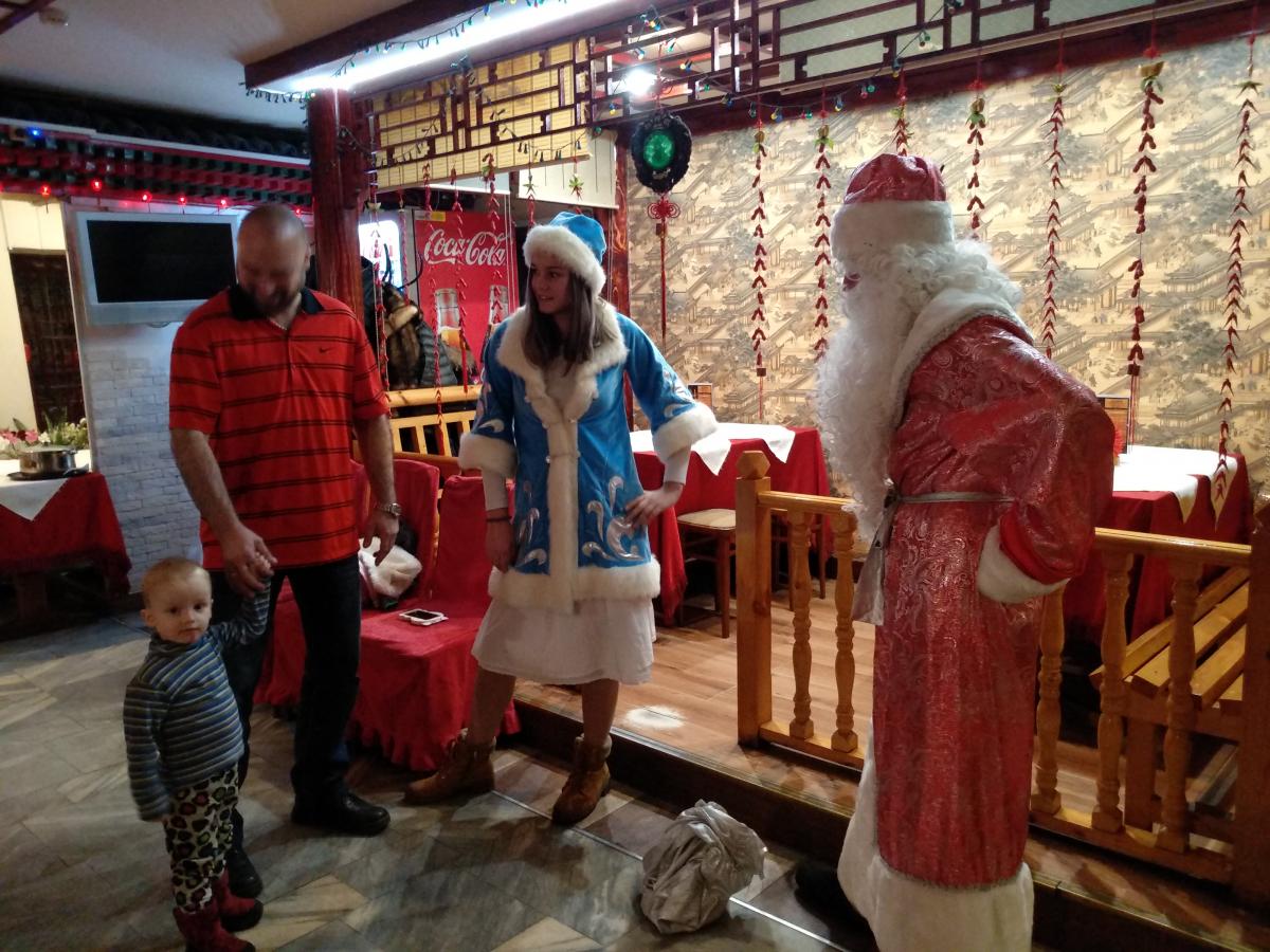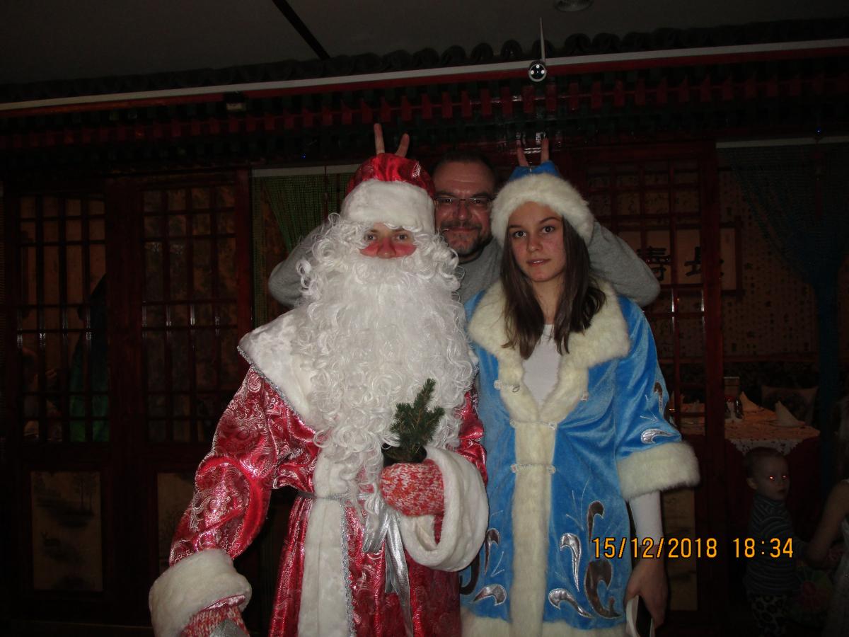 настоящая Снегурочка (и косы натуральные!). так вот, в последних на тот день гостях по маршруту (поздравляли детишек) согласились сесть за стол с взрослыми, дети - в комнате резвятся, а кухня - маленькая,