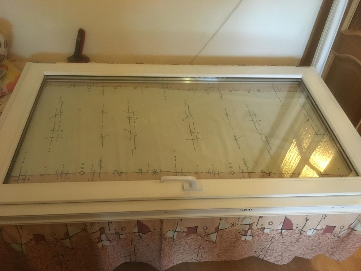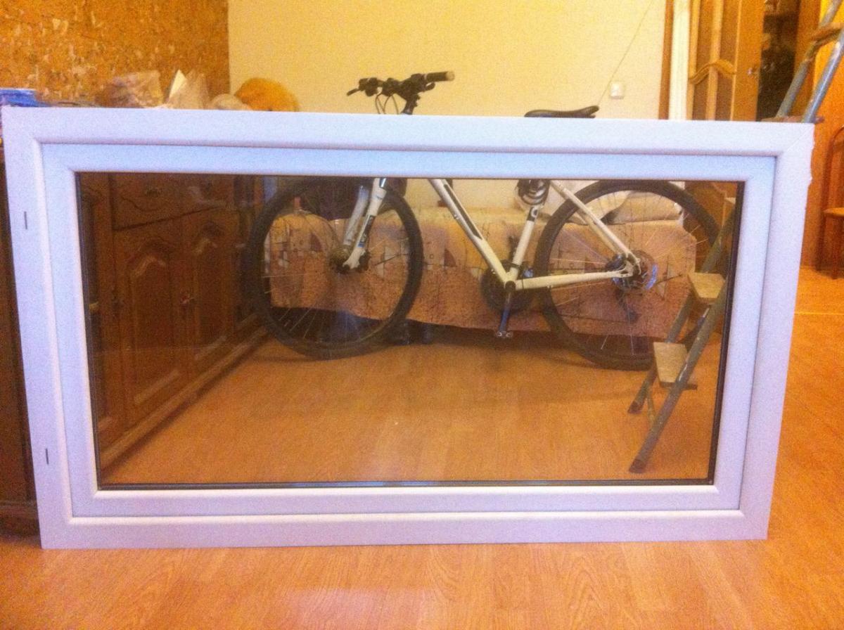 Окно в сборе, однокамерный стеклопакет, с ручкой, стояло внутри жилого помещения, в перегородке. Отл. состояние. Открывается в обычном режиме, и в режиме проветривания. Толщина около 6 см.