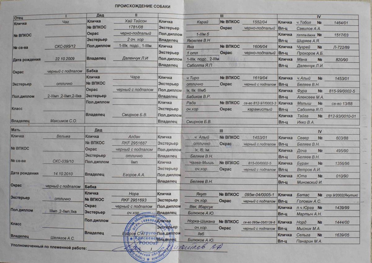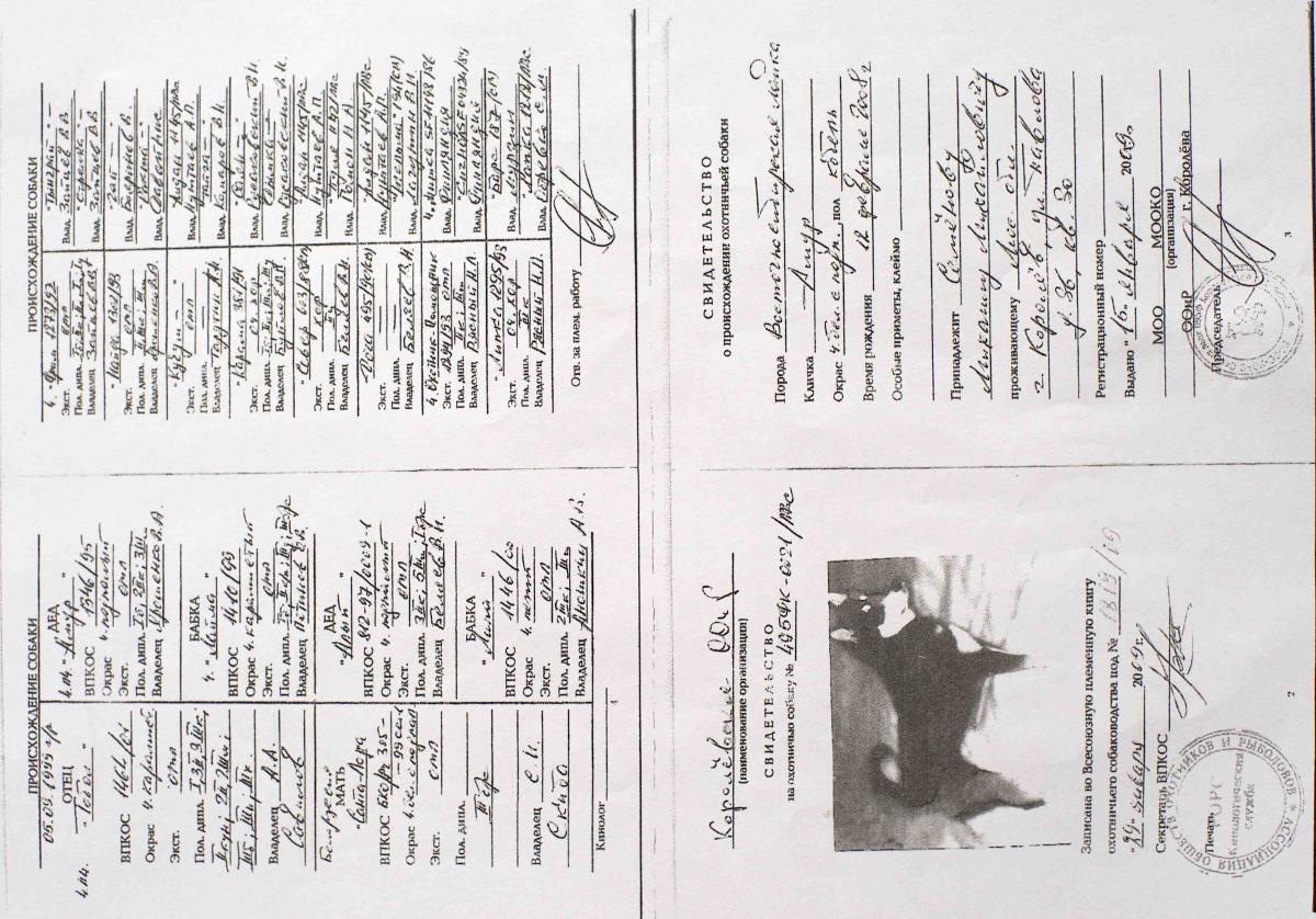 5. Отец: Амур ( Семёнова М. М . ), EXPORT BCU/Rg 305-000066 РКФ 2591251
