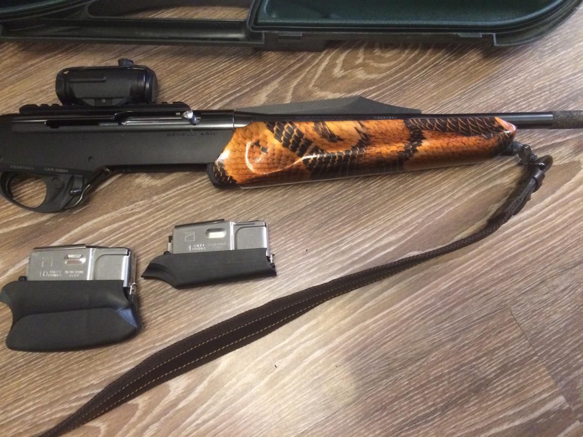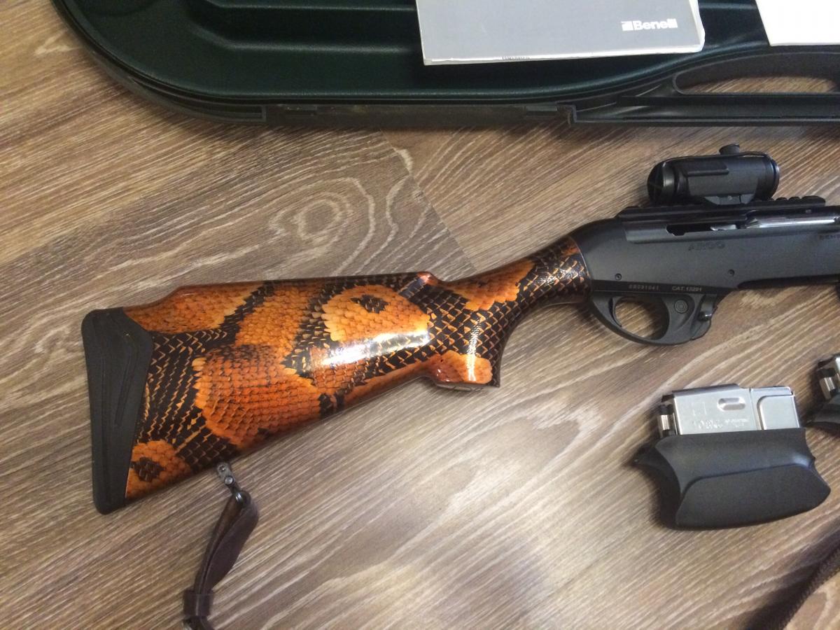Карабин в идеальном состоянии. На карабин установлена оригинальная планка Вивера с коллиматорным прицелом, в комплекте идут 2 магазина на 4 и 10 патронов и оригинальный чемодан BENELLI. Цевье и приклад – орех, закатанные в пленку аква-принт под змеиную кожу и покрытые 3 слоями лака (карабин не царапается и не боится дождя и снега). С карабином отдам 65 патронов и комплект для чистки оружия. Оформление только по лицензии через Лицензионно-разрешительную систему в городе Лодейное Поле Ленинградской области.Тел.+7-911-276-56-69 Игорь.