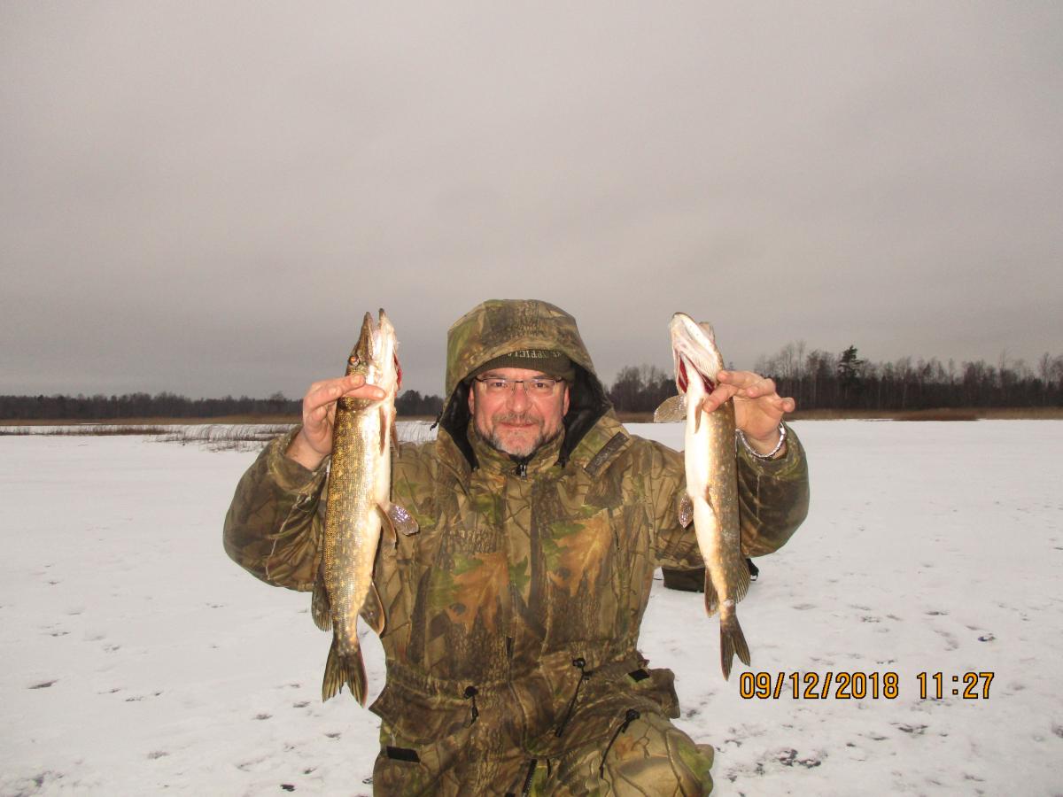 Погода дрянь, ветрище.. Ребята уже домой поехали.. Одну щучку взяли. Я не участвовал, на речку в разведку ходил.. Ввалился у бобровой хаты по пояс, пришлось быстренько домой бежать..