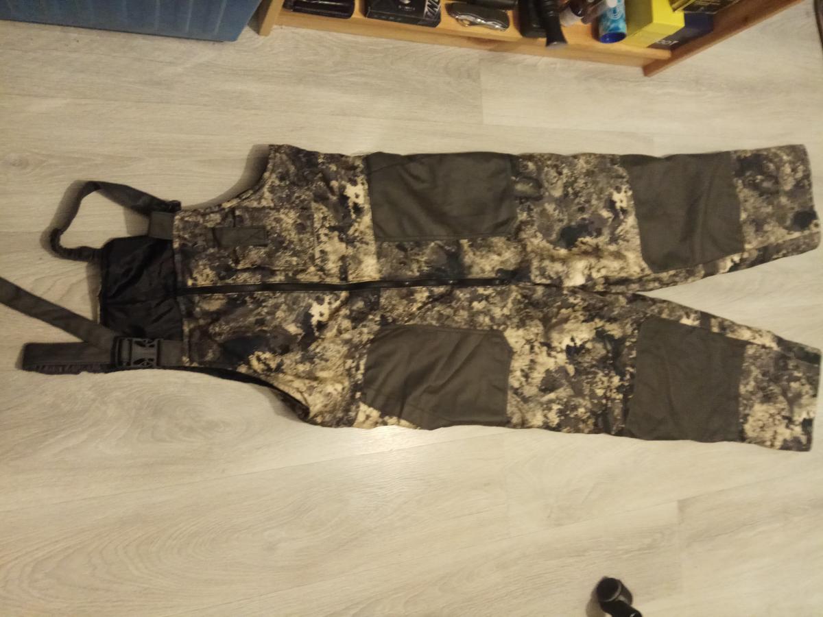 Тёплый камуфляжный костюм: полукомбинезон и куртка с отстёгивающимся капюшоном. Размер 48-50, рост 170-180.