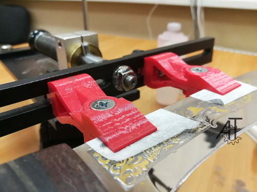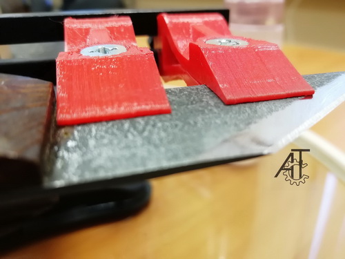 Штатные зажимы (назвал их красный геккон) надежно зажимают клинки толщиной от 1,5 до 5 мм разной формы: