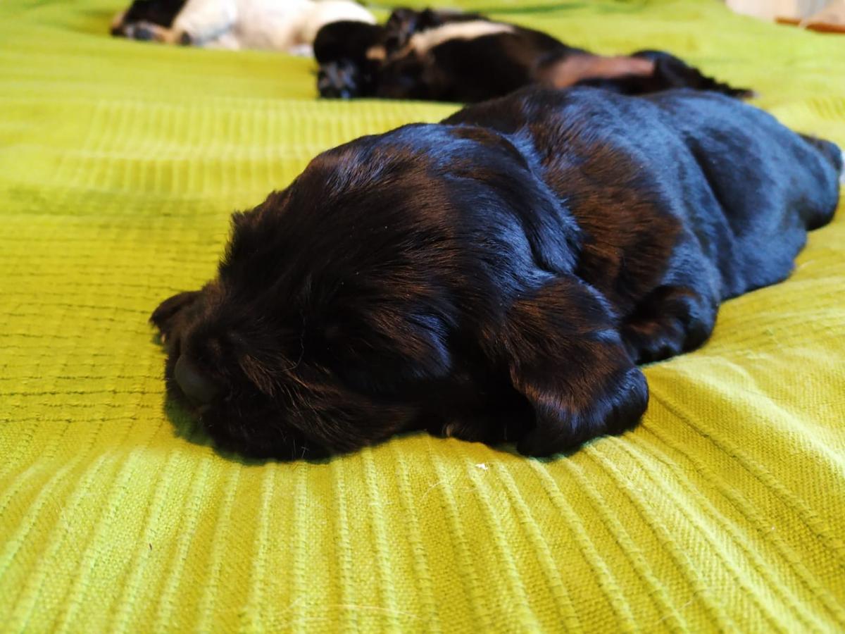 Свободны:1 черно-пегий в крапе с подпалом кобель, две черных суки и одна черно-пегая в крапе сука