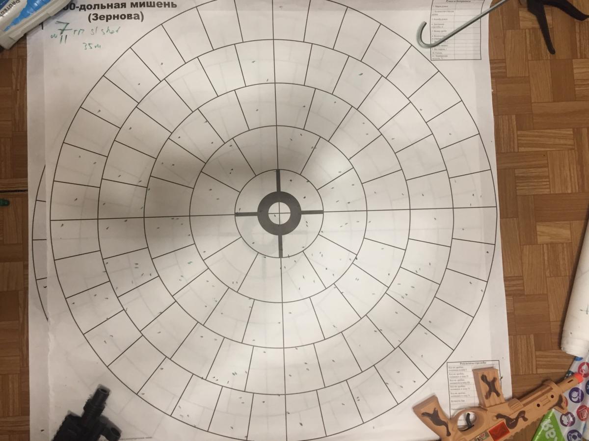Субботнее. 35-36м полный чок, с кофра, первая фаланга, под яблочко целился. Мишени подписаны.