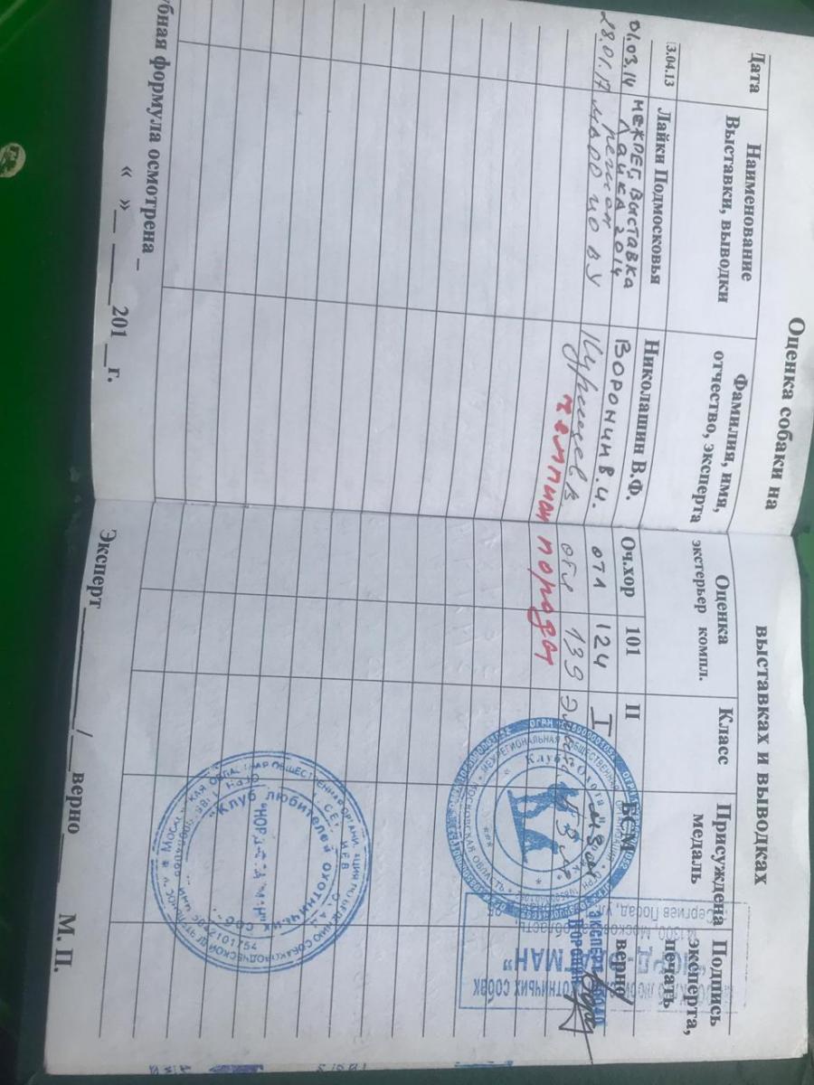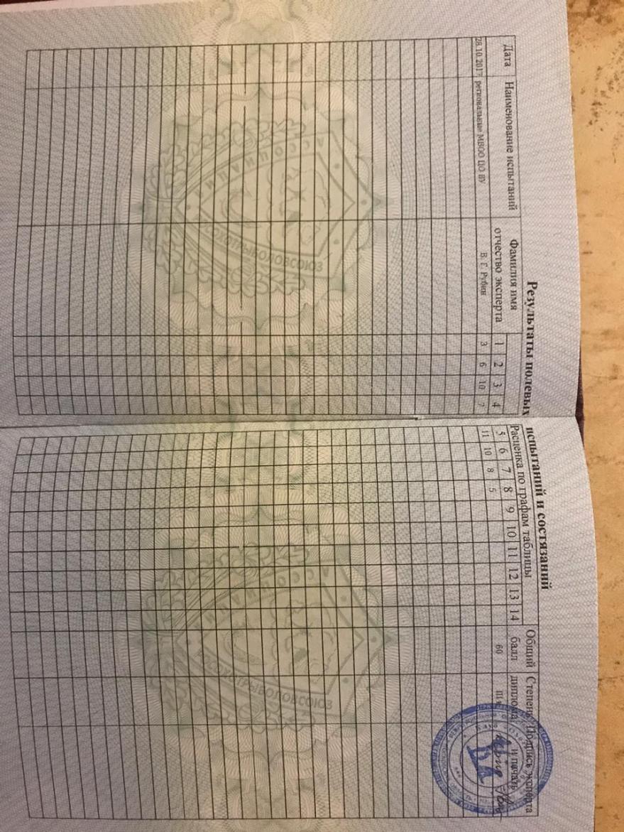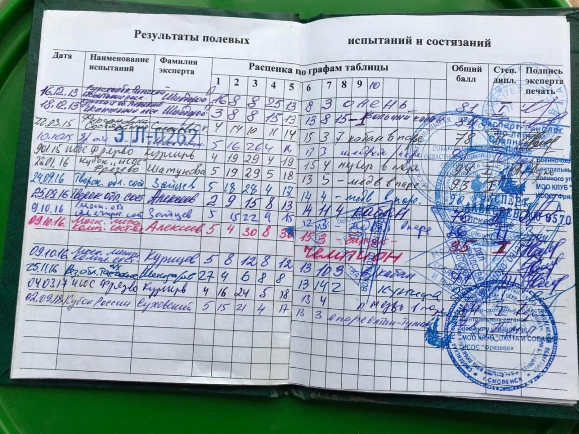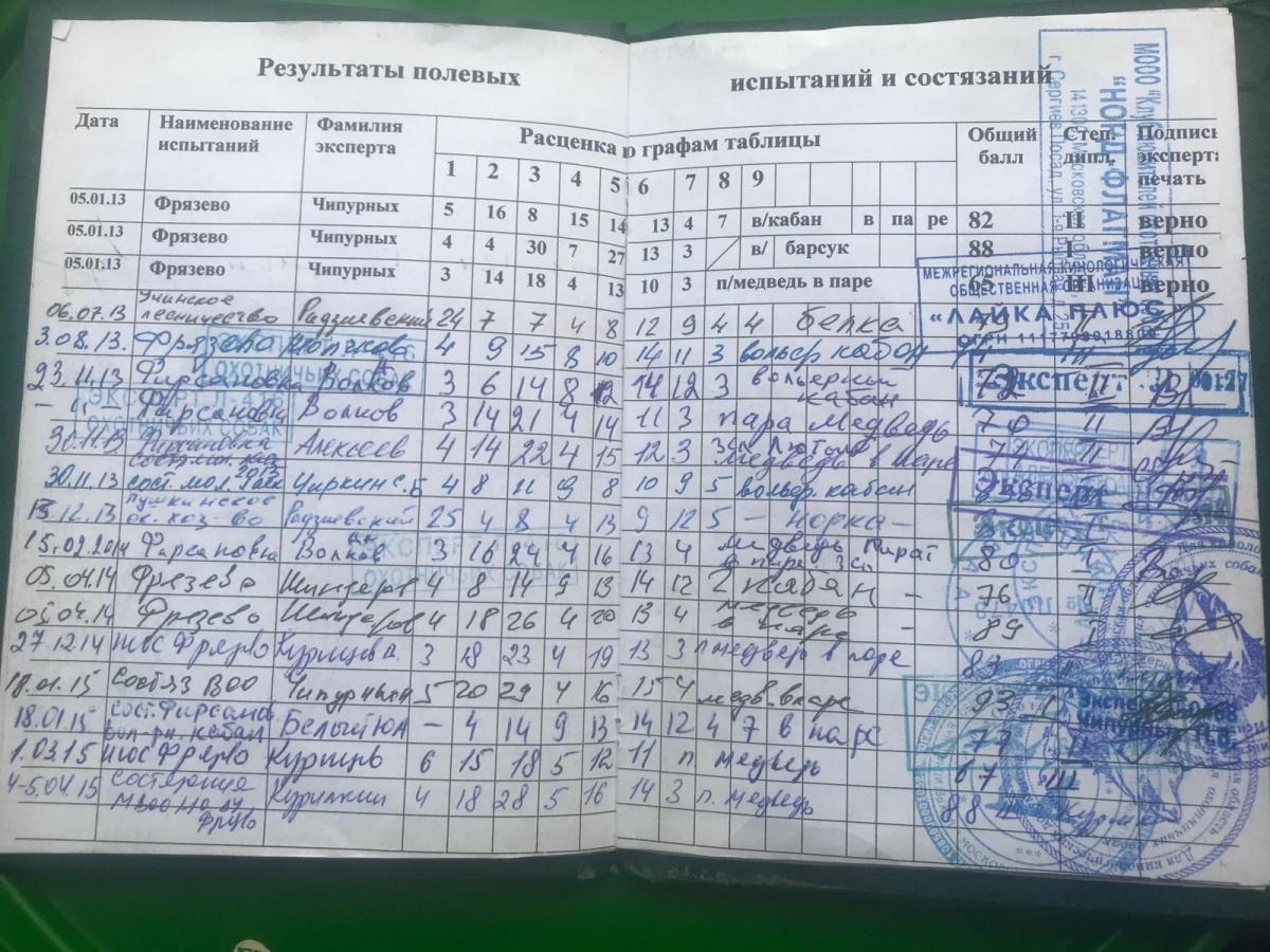 Результаты полевых испытаний рабочих качеств (дипломы): I – в/к; I – в/б; I – куница; I – медведь в паре; I – олень. (остальные результаты во вложении).