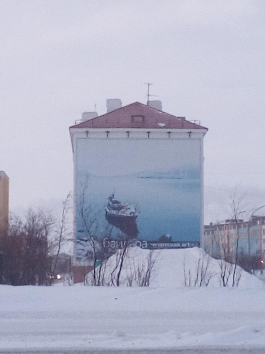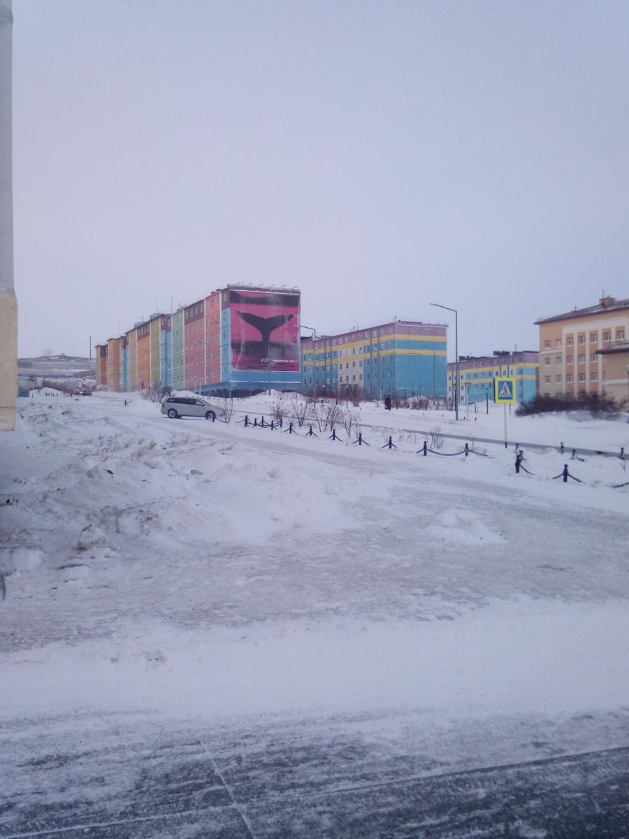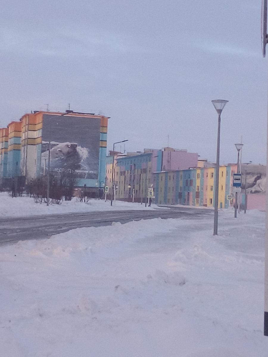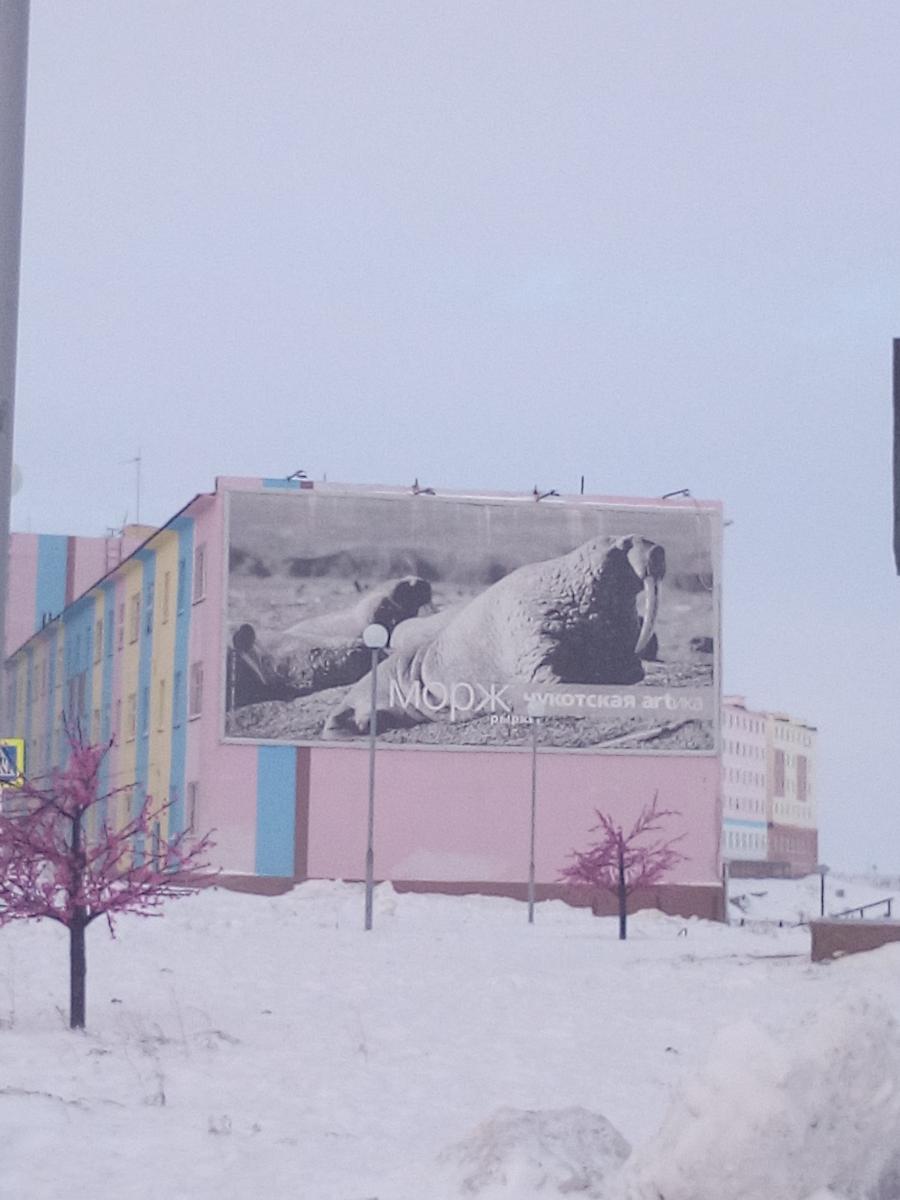 На некоторых домах нанесены картины, отображающие животный мир и быт Чукотки.