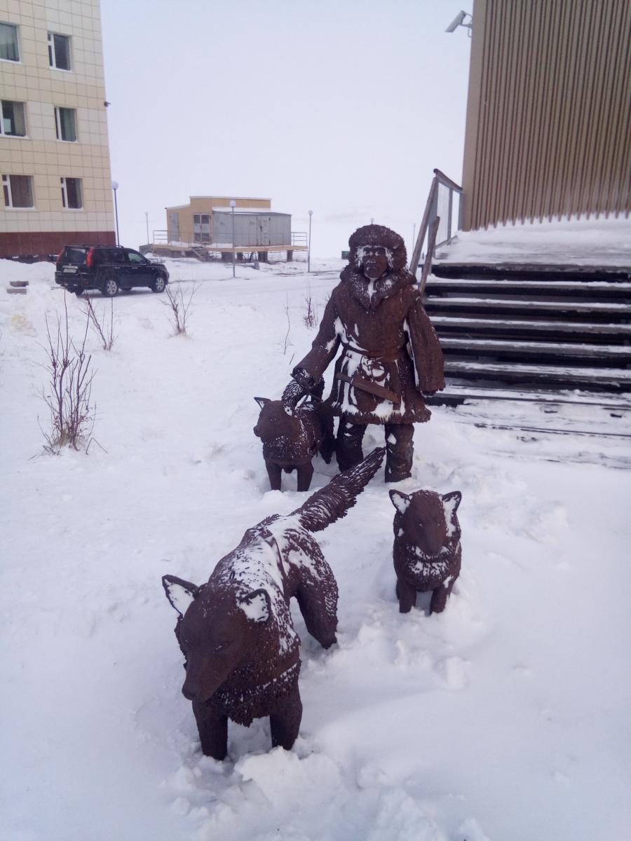 Памятник чукче у входа в музей.