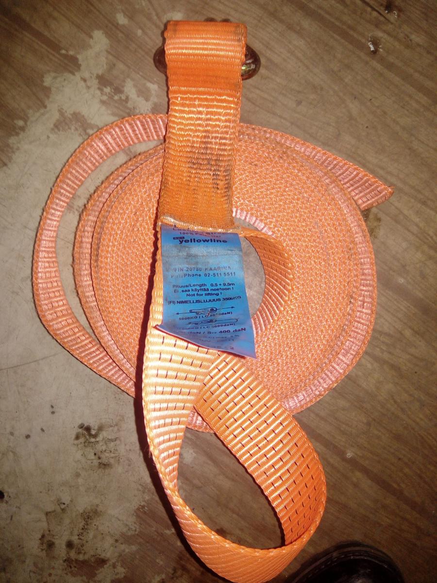 Использую динамическую стропу по моему от Tplus. 9 метров, на разрыв 9-11 тонн.