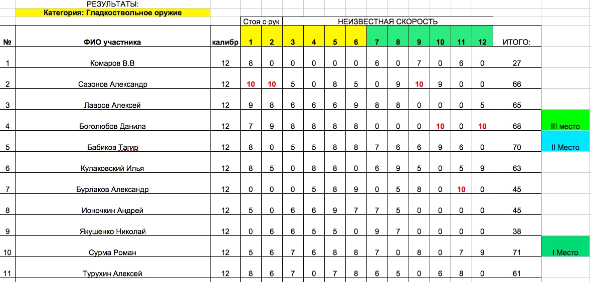 Я знаю людей которые приезжали первый раз, а уже через год составляют приличную конкуренцию. Для этого и стреляем. Для первого раза формат «смешанный бег» это конечно жестковато. Организаторам спасибо за труды и мучения.Хотелось бы более информативный порядок очередности стрельбы участников где нибудь на видном месте кто когда и за кем стреляет.А то я к середине стрельбы уже в "легкий","тяжелый","гладкий","второй заход в легком","третий в тяжелом" ,"первый в гладком" всю очередность перестал понимать кто за кем ,когда готовиться и через сколько номеров стрелять зачет.Попытка взглянуть в три разные ведомости из которых по очередности выставлялись стрелки еще больше вскипятила мозг. Одни и те же фамилии в разных ведомостях и хрен поймешь в каком классе сейчас стреляет человек.Иногда не сразу и разберешь. Хотелось бы как-то более просто и понятно. У тебя 24-й номер ,а сейчас стреляет 16-й. Тайминг прикинул на 12 выстрелов для 7-ми стрелков и уже знаешь когда тебе начинать готовиться к стрельбе.