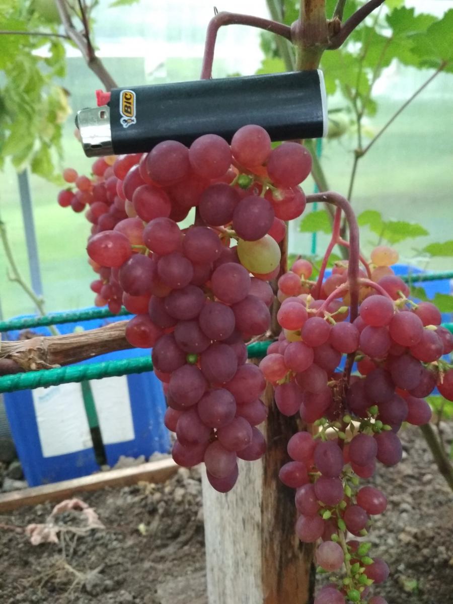 Виктория, второй год, первое плодоношение, сигналки, IMG_20200721_190029.jpgIMG_20200726_090638.jpg столовая форма, но с ФТЦЖ..цвела первая, опылители еще не цвели, вот и получился горох :)...зато с мускатом и без косточек :).