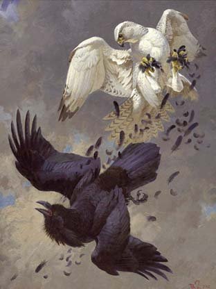 Для современного российского сокольника имя Вадима Горбатова говорит о многом. Извесный художник -анималист уделил большую часть своего внимания и таланта как хищным птицам вообще, так и ловчим в частности.