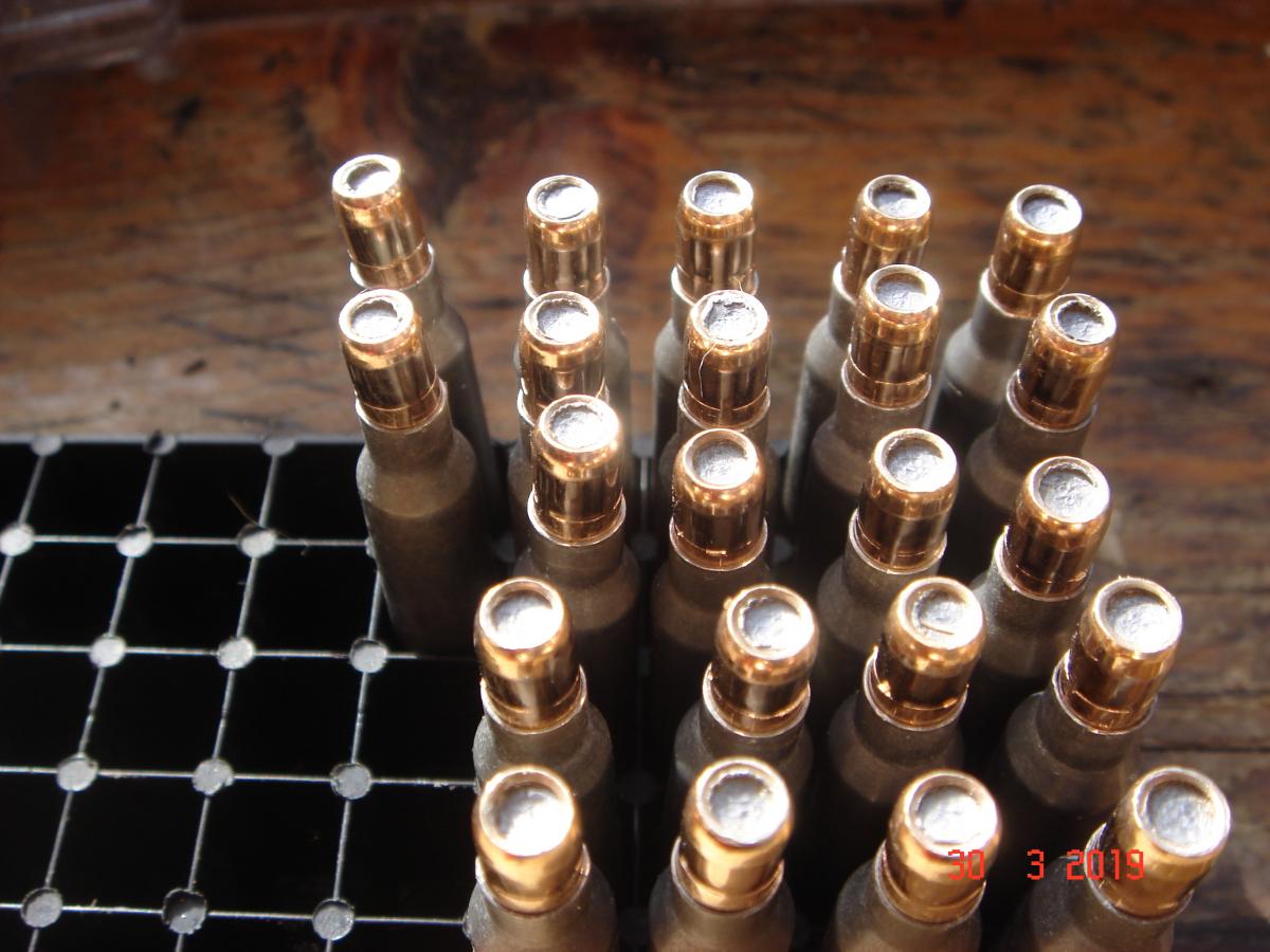 Не утерпел, разрядил пачку оболочки ТПЗ, в патронах которой должен быть Сунар 5,56. Завтра, если выберу время, заряжу несколько вариантов навесок с лёгкими пульками и попробую их носы заточить.