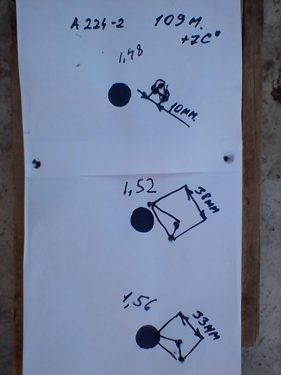 Знаю, Геннадьич бурчать начнёт, что по три выстрела мало Навеску кучную нащупал, похоже, теперь 1,48 г. отстреляю 5 патронов, да ещё надо вниз пройти и вверх до начала передоза.