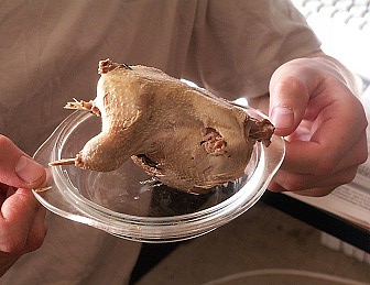 К дому пошли через всю деревню)))) селезня нес чуть не над головой!!!! От радость чуть морды, перекошенная идиотской улыбкой, не треснула!!!