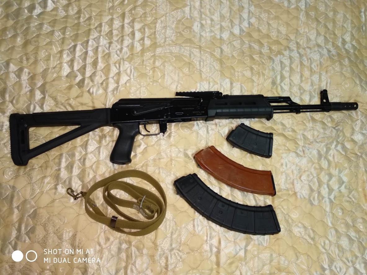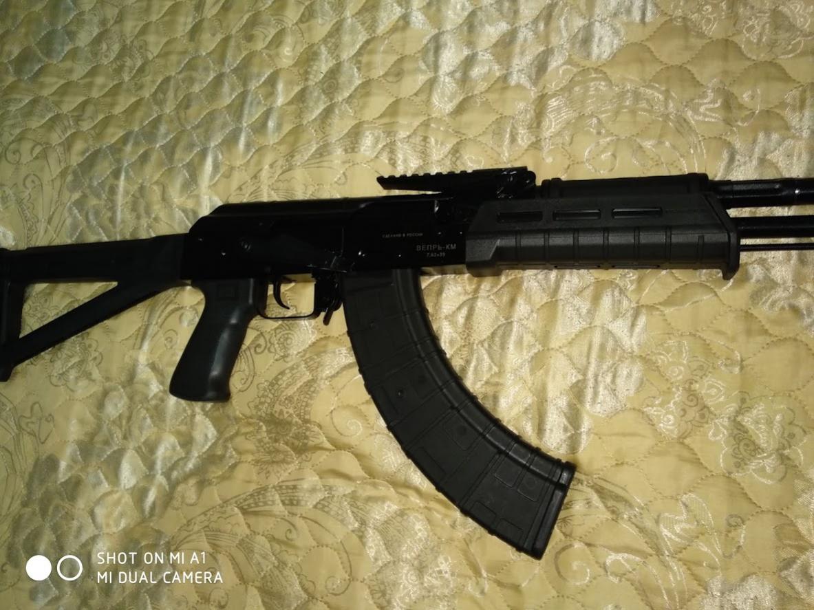 ВПО-136 он же Вепрь КМ. 7,62х39 покупал летом 18 года, мною был установлен приклад магпул, цевье магпул(китай), планка кочевник, рукоятка пафган и дульник, так же в комплекте ремень, штатный свисток, родные деревяшки.