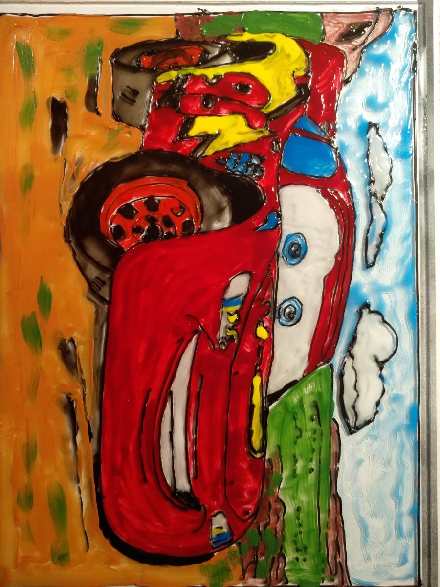 Подруга сделала рисунок на стекло духовки. Старое стекло разбилось, новая дверца стОит почти как новая духовка.