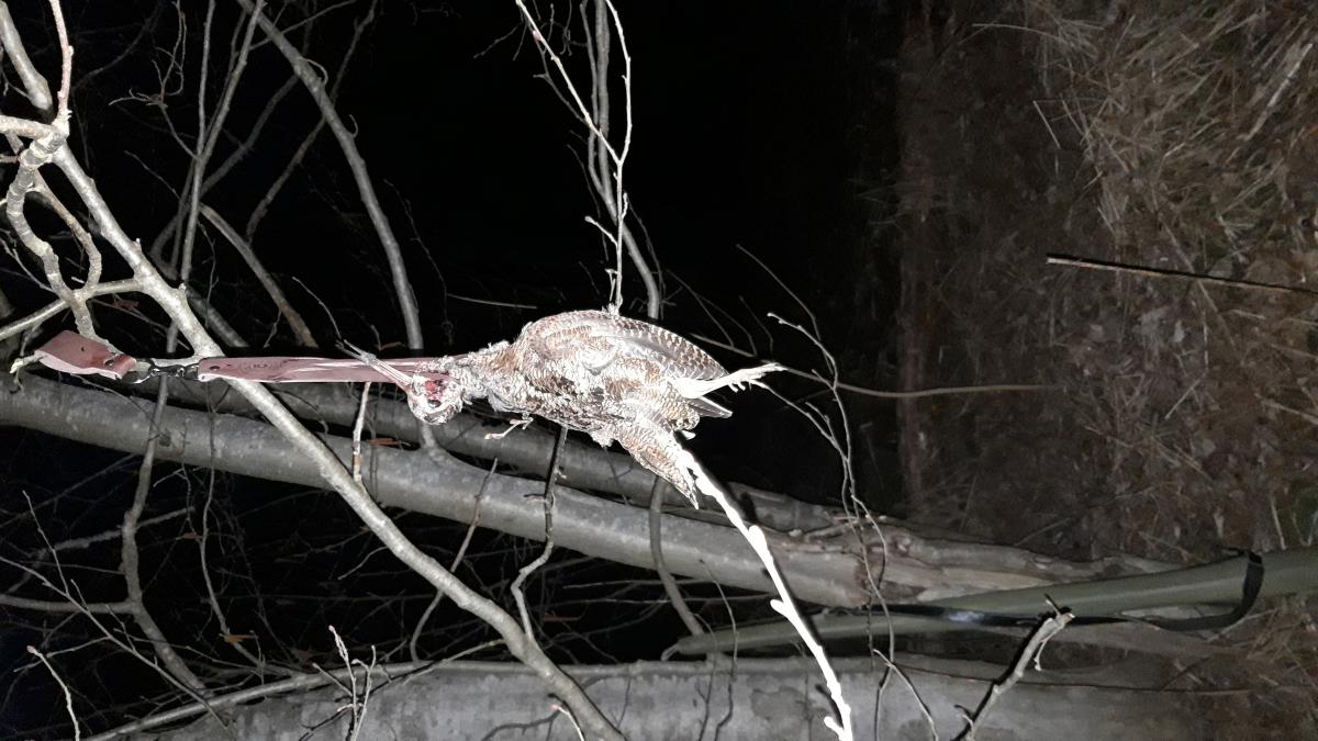 25-го на том же месте. Температура воздуха та же, что и накануне, но пасмурно и небольшой ветерок. Холодно. Два пролета, один на выстреле, не реализован (стрелок очень не очень), второй шел над заросшим оврагом, стрелять не стал, так проводил стволом только