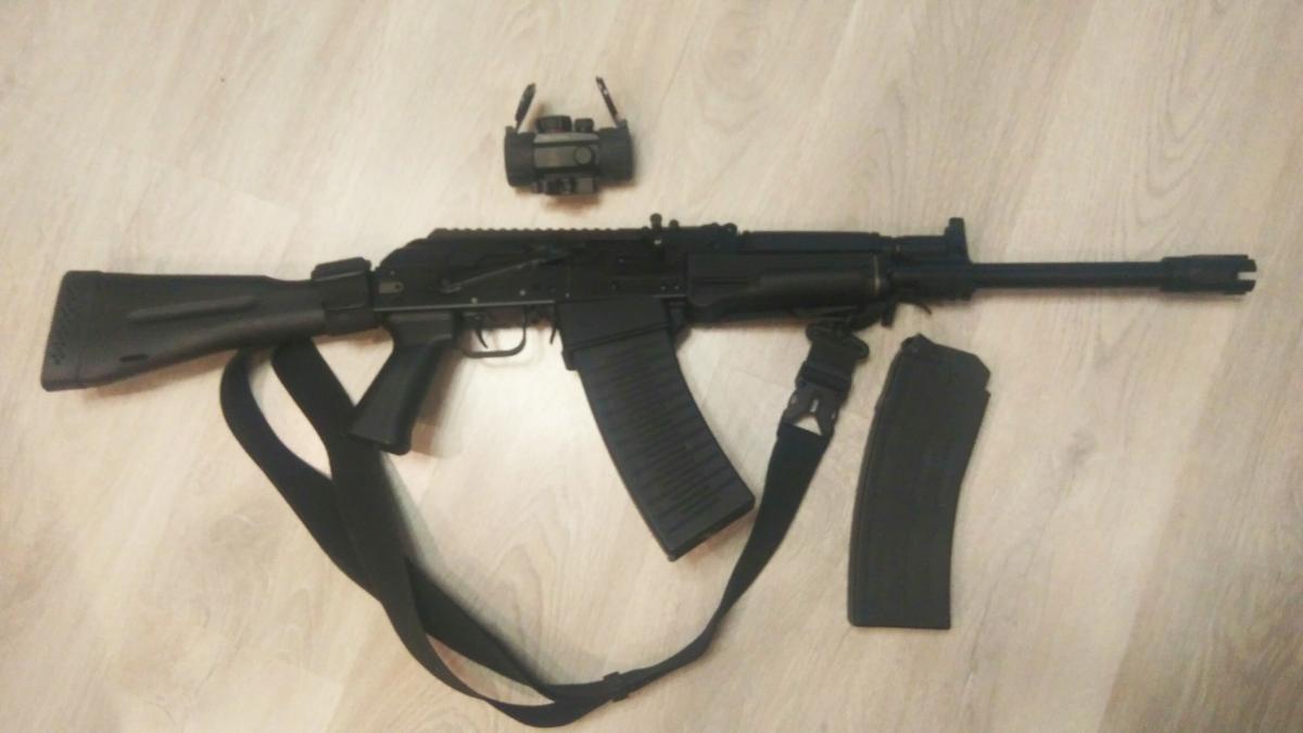 комплект продажи: ружье, два магазина, ремень, коллиматор Leapers, чехол.