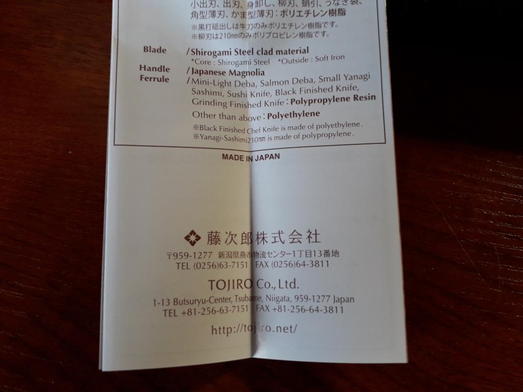 [FONT=&quot]Просматривал где-то 3-4 недели тому назад тему про ножи- «Похвастайтесь своим ножом» . Прочитал пост Неманского про японские кухонные ножи с фотографией. Заинтересовался. Задался вопросом- « …чего это в них такого особенного, почему такой уважаемый человек повыбрасывал все свои старые ножи?»… Начал изучать интернет и отзывы. Еще больше заудивлялся. Оказывается, я со своим точиловом Лански - простой слесарный подмастерье. А имеющиеся в доме цептеровские и другие кухонные ножи- полный отстой и низкопробное железо. Вот с такими мыслями я начал искать приемлемый интернет-магазин для пробной покупки настоящего японского кухонного ножа. Изучить цены на существующее многообразие кухонного ножепрома- та еще задача. Российские магазины сразу отмел. Ебей изучил и другие японские площадки типа Ракутена, Амазона, жапанесшефкнайф и прочие ножевые сайты. Нашел https://www.hocho-knife.com/brands/. А вот отзывов о магазе наших не было. Там прельстило обилие брендов и моделей, русскоязычный перевод. Зарегился и оформил 2 ножа. Чисто внешне и по характеристикам понравились бюджетные варианты от Сакаи Такаюки. Решил брать сантоку и петти в 33-м дамаске с сердечником из ВГ-10. Вот только 120 размера Петти на складе в последний момент не оказалось и мне предложили за те же деньги 150 размер. Согласился. Оформление через [/FONT][FONT=&quot]Paypal[/FONT][FONT=&quot] минутное. Доставку выбрал ЕМС как оптимальную. 8[/FONT][FONT=&quot]-[/FONT][FONT=&quot]го заказал и 19 посыль уже дома. Включая трансфер из Киото-Осака-СПб-МСк- Камчатка. После первого заказа через 2 дня (когда по работе выписали ежеквартальную премию) оформил второй заказ еще на 2 ножа «чисто-конкретно» для рыбы – знаменитую Дебу и янагибу для нарезки филе. Причем 7 разных вариантов ножей для меня оптимальных в соотношении цена/качество присоветовали специалисты магазина и лично г-н Норимаса Кусида. А я выбрал 2 из предложенных. Классику. Белую сталь. Широгами. 10-го оформил заказ и 19 утром он уже прибыл домой, догнав и перегнав первый заказ. Теперь осталось дозаказать в мае оригинальный точильный камень, держалку ножа для заточки и масло для стали широгами ножей. Впечатления от магаза и персонала- только положительные. Японцы адекватные, доброжелательные. Так, что магаз рекомендую. Для оптимизации цены покупки- рекомендую сначала выбрать модель ножа, который вам нужен, бренд. Потом пробить цену этого ножа по всем торговым площадкам, что бы убедится в правильности выбора магазина. Во всяком случае я делал так и оказалось, что везде выбранные мной модели на других площадках стоили дороже. И еще одно наблюдение. На страницах Ебей, когда читал про описание какого-либо недорого японского ножа за «500 рублей», обратил внимание на предупреждение продавца, что:….»товар может быть из японского материала, но изготовлен в другой стране –Китай, Вьетнам, и др. если не стоит надпись «Сделано в Японии». То-есть сами японцы-продавцы предупреждают, что у них могут продаваться ножи «не японские»… Значит есть и у них «подводные камни». Итак. Коробка с ножами. Целая. Сопроводительны доки в кармашке. [/FONT]