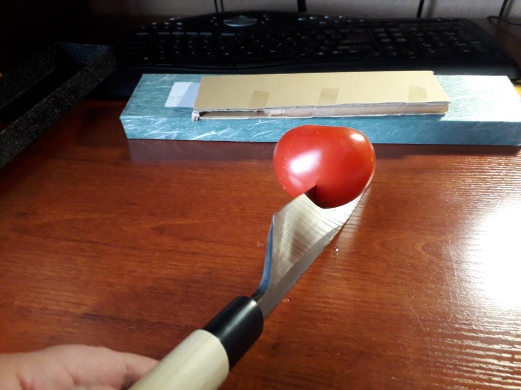 [FONT=&quot]Оба ножа срезают волоски с руки едва дотронувшись, бумагу режут, как по маслу. На Дебу переверную вверх лезвием «уронил» с высоты 20 см помидорку- разрезалась.