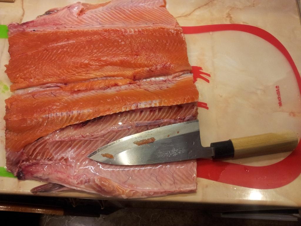 [FONT="]Нож Деба приятно лежит в руке, удобно. Не тяжело, хотя в обухе он 8 мм. Длина лезвия 165 мм. К лезвию дотронуться страшно- на расстоянии чувствуется острота. Нож обработан со всех сторон- ни выбоин, ни заусенцев, вся заточка идеально ровна. Когда держу в руке этот нож, то на клеточном уровне начинаю понимать, почему им будет удобно разделывать лосося. Потому, что Деба тяжелый и очень острый. Каждое движение будет только один раз. Ра-а-а-з и разрезал рыбину пополам!!! Уж сколько я за свою жизнь лососей разных разделывал- не счесть! И всегда резал и думал- когда же это закончится….хотя ножом всегда разделывал своим охотничьим, острым (по моим старым понятиям). [/FONT]