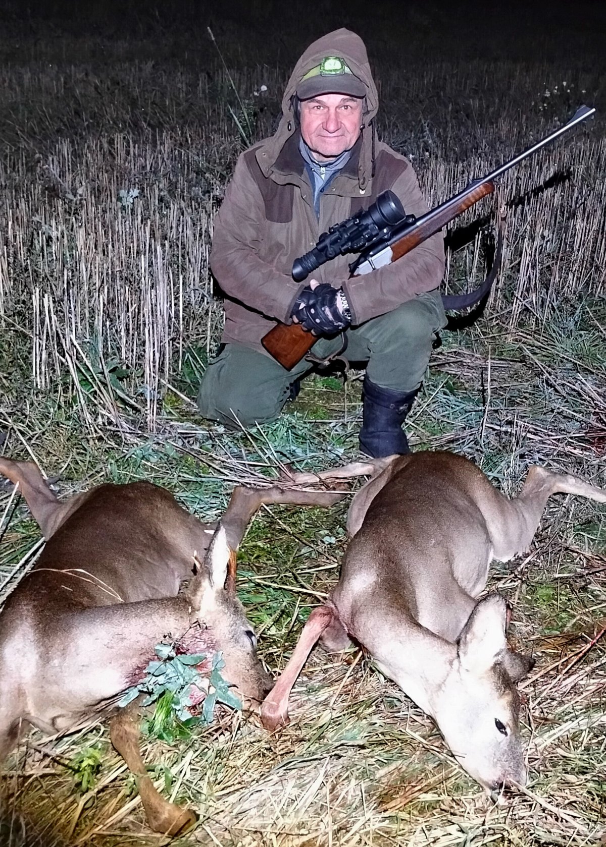 По оперативным сведениям из РБ: наш земляк Андрей вчера вечером засветло, как видим, добыл в Витебской области двух замечательных козликов.