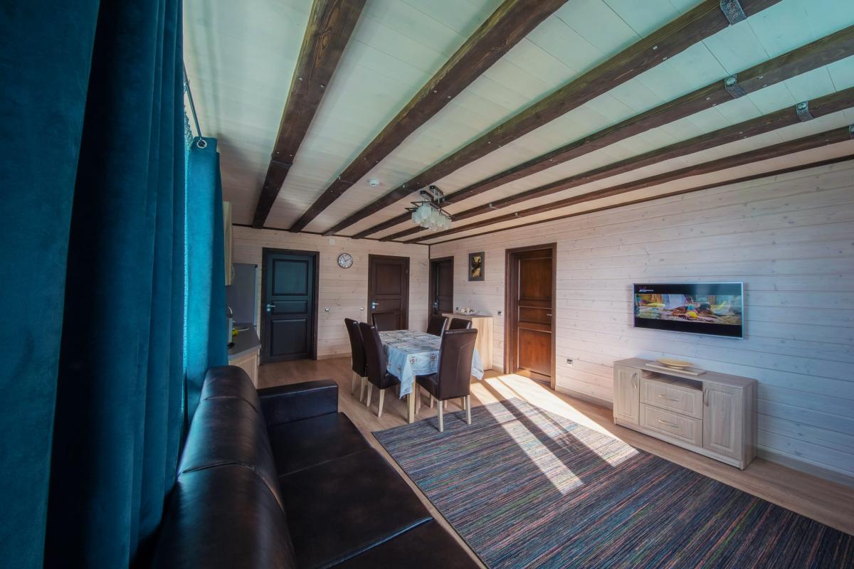 Гостиная с мягкой мебелью и ЖК-телевизором, удобные кровати с ортопедическими матрацами. Кухня, оснащенная всем необходимым, чтобы организовать веселое застолье или семейный ужин.