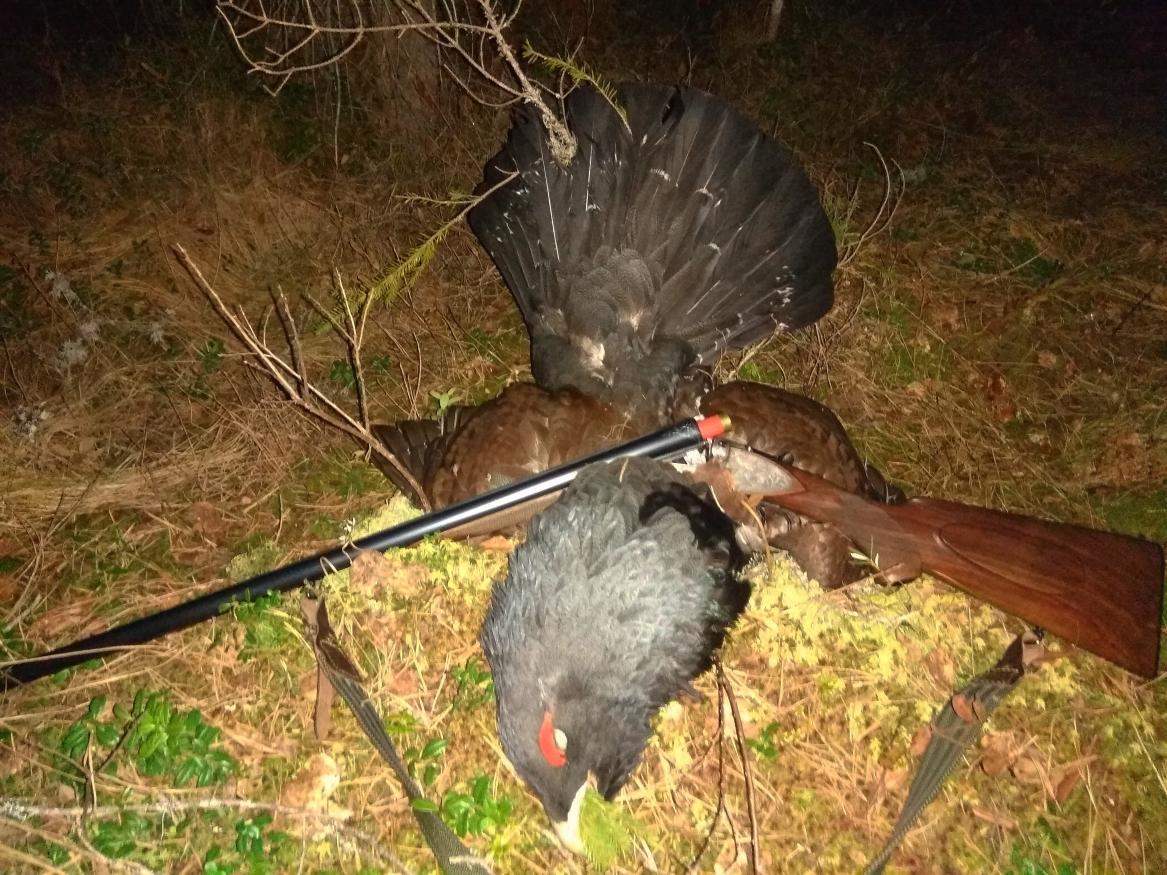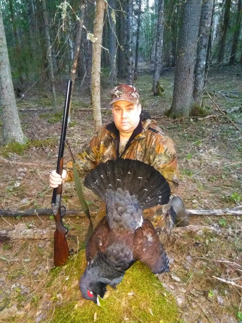 И так ,заехав поздно вечером в пятницу в гастроном, прикупили всего необходимого для недельного, автономного житья-бытья на природе, двинули в угодья . Открытие сезона было принято провести на глухарином току. Неспеша доехав до нужной точки поставили" Мазератти ",переоделись и выдвинулись в пяти километровое путешествие. И вот тут началось самое интересное .Из за обильных снегопадов этой зимы все лесные дороги и просеки наглухо завалило мелким подростом и сухостоем вперемешку. Поход превратился в АД !!!Организм застоявшийся за зиму получал предельные нагрузки форсируя все эти препятствия. Подходя к току в голову пришло понимание того что выйти на нужную точку откуда слышно всех певунов не получится, из за отсутствия дождей лес весь высох, дороги высохли ,а под ногами кучи мелких и не очень веток которые лежат ковром. Грохот стоит страшнейший и ничего не сделать . Не дошли до тока метров триста, отдышались и начали слушать. Повезло. Петух запел совсем рядом с дорогой и нас отделяло метров двести. Короткая перемычка леса и я на болоте , а там "БРОДВЕЙ",сухо, чисто, иди как по полу. С токами в последние несколько лет творится что то не понятное , хорошая погода не поют, плохая ,поют. То одни куры в току, а петухов нет. То одни молчуны. Короче каждый год все хуже и хуже !!! Вот и в этот раз ничего выдающегося. Поет тихо в пол голоса ,еле слышно.5-6 песен ,молчит.5-6 песен ,молчит. Утреннего вальдшнепа нет, тетерева молчат, журавлей не слышно, фигня какая то. Подошел я к этому деятелю метров на 20,слышу прекрасно ,а видеть не вижу. все сосны перспективные прочесал, не вижу и все. Начал заходить лицом на восход что бы на просвет его родимого срисовать. И наконец ,вот он.....Сидит в пол дерева ко мне грудью (как щепка) маленький ,сморщенный "ВОРОБЕЙ". Ну а дальше все банально: пропустил несколько песен, поднял тихонечко шестидесяти девяти летнего старичка,поблагодарил , простился с птицей и заряд тройки поставил жирную точку этого утра.