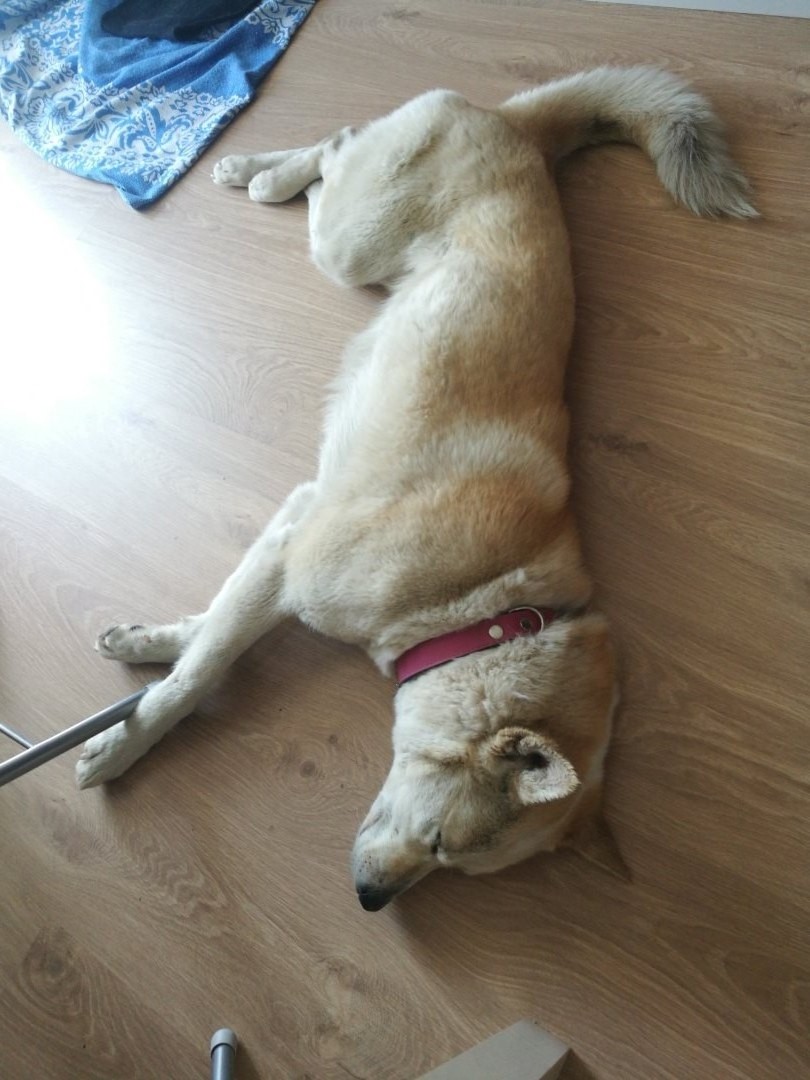 Найдена сука 14.05.2019, в городе Санкт-петербург, в районе ул.Генерала Симоняка, Порода- Лайка, ( Западно-сибирская вроде бы ) Окрас: Бело-оранжевый.