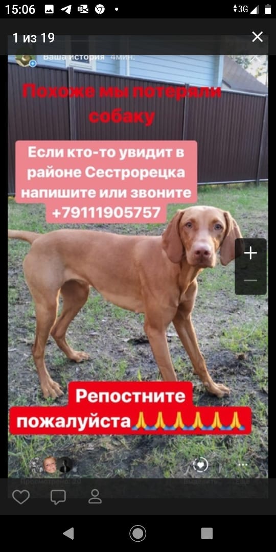 Други, помогайте репостами и т.д. 19 мая на пляже в районе снт Дюны Сестрорецк потерялась сука венгерской выжлы. Зовут Ева. 11 месяцев, чипирована и клеймо есть. Собака не моя, соседи по поселку потеряли.