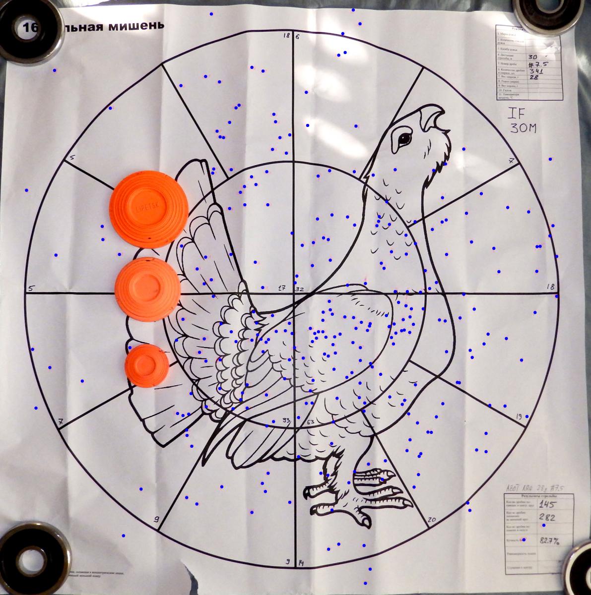 Дальше - вам надо оценить полеты на площадке в плане дистанции и раскрыва мишени. На охотничиьх турнирах я не припомню чтобы запускали мишени ребром. Редко попадаются и нестандартные мишень - миди и мини. Обычно работаете со стандартной мишенью где-то между 1/2 и плашмя.