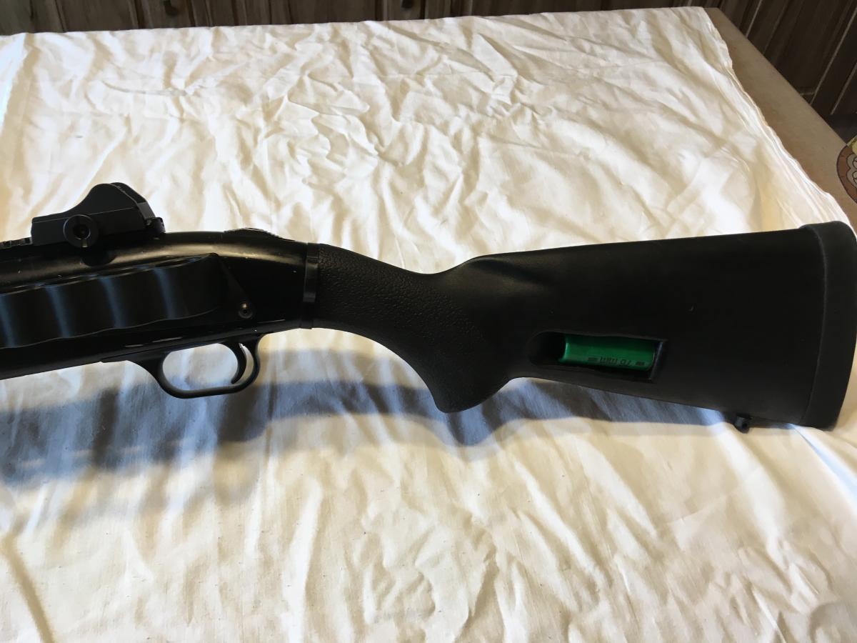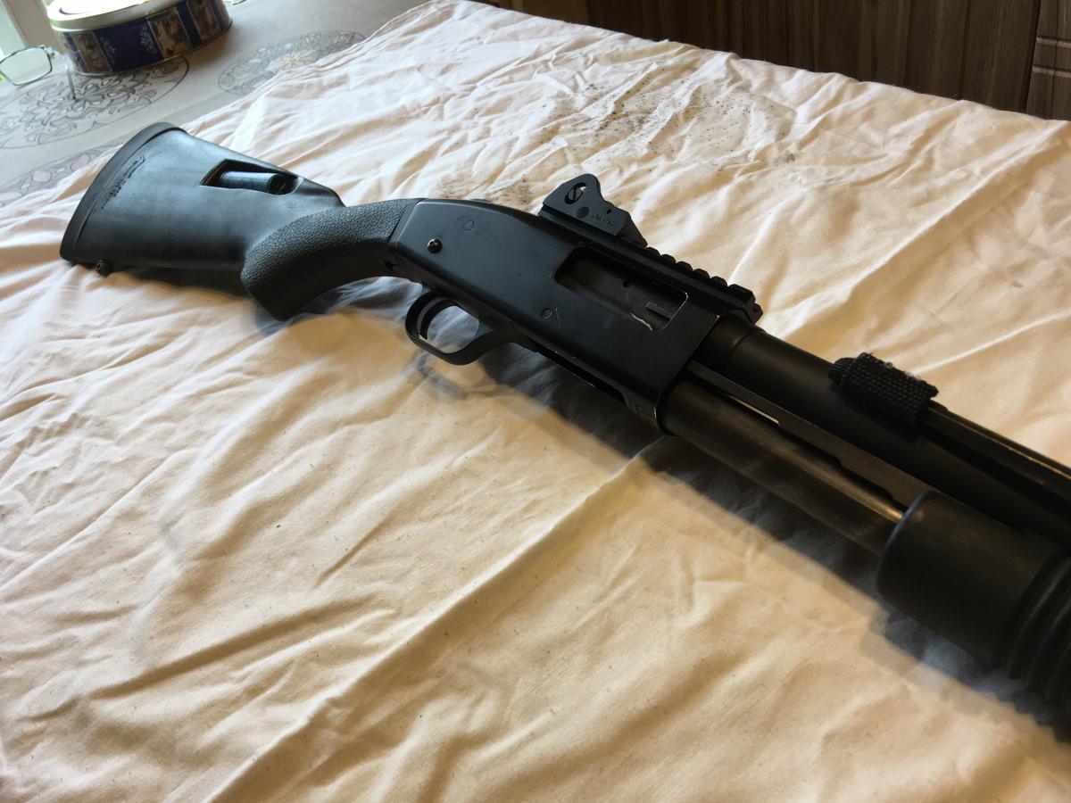 Оружие для зомбиапокалипсиса - армейское помповое ружье - Mossberg 500M MILS (MIL SPEC 3443G). От гражданских Моссов отличается повышенными прочностными характеристиками узлов и деталей, устойчивость к разного рода химическим реагентам, а также уверенную работу в экстремальных температурных режимах, в т.ч. тяжелый толстостенный ствол и усиленный патронник имеют двукратный запас прочности по сравнению с гражданскими моделями! На стволе паркеризованное покрытие (для защиты от коррозии части погружаются в смесь 2% раствора фосфорной кислоты и двуокиси марганца, после чего их купают в масле. Покрытие гораздо более стойкое, нежели воронение или покраска). Кому принципиально, номер чистокровного вояки с префиксом US1xxxx, в отличии от 'огражданенных' стволов с номерами серии USAxxxxx.