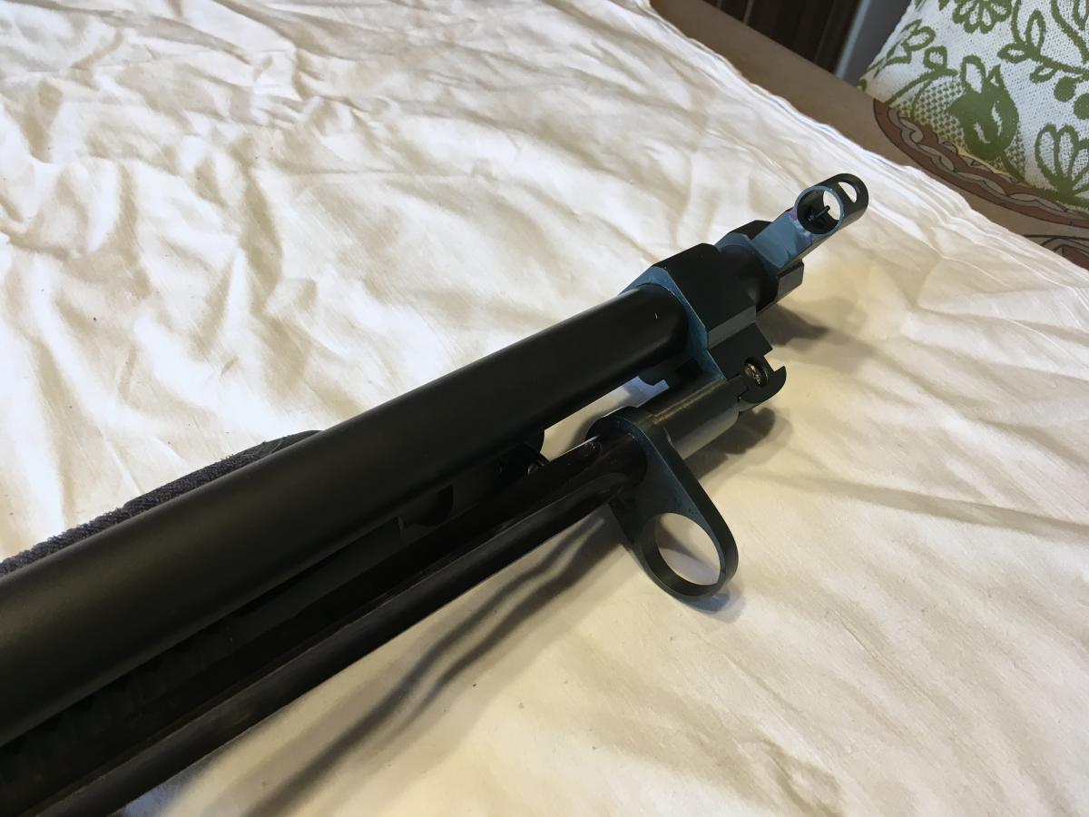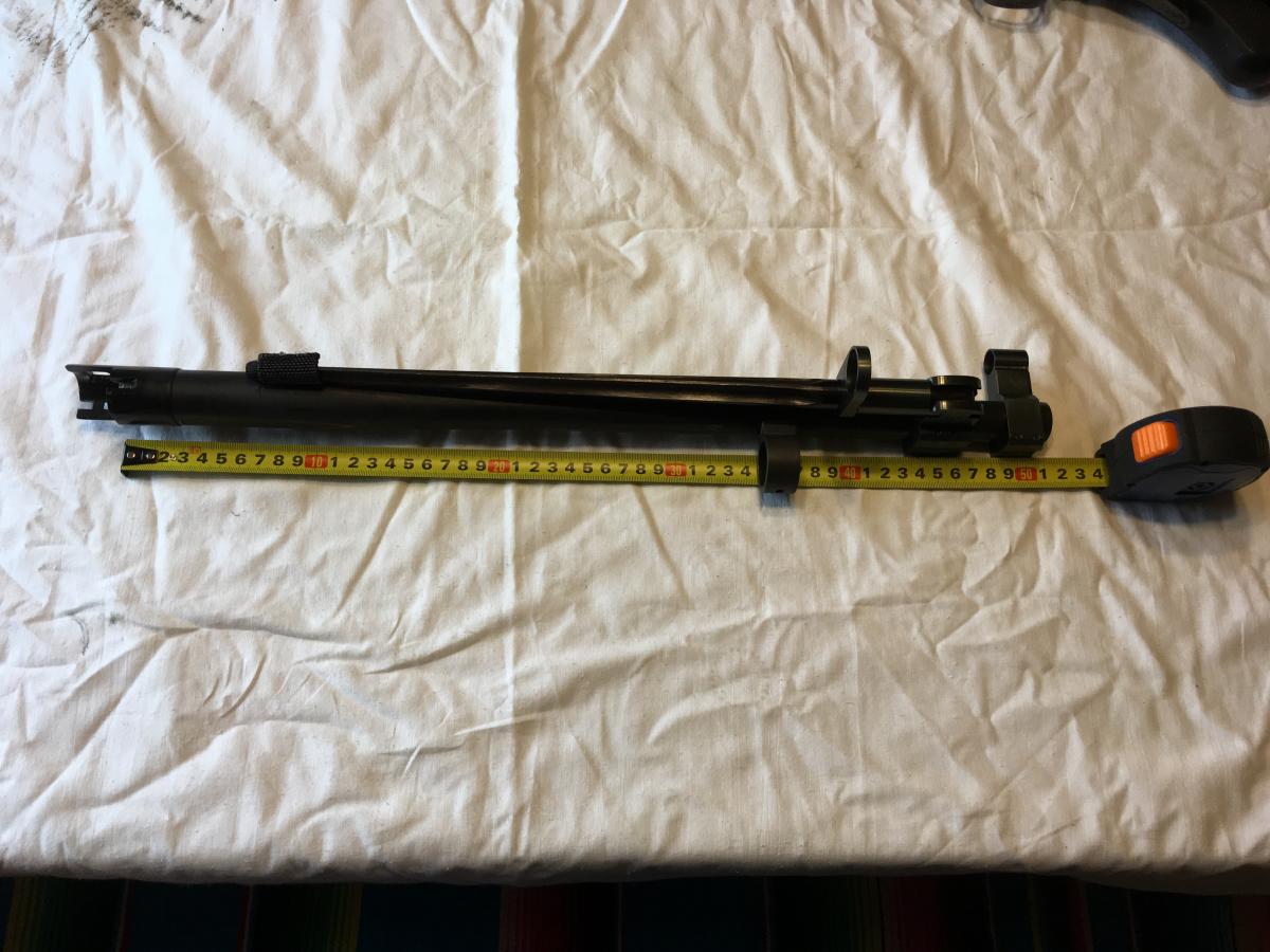 Длина ружья - метр ровно, 6-зарядный (5+1), длина ствола 510, толщина ствола на дульном срезе 2,9 мм, получок, антабка GGG между прикладом и коробкой и в гайке магазина, вивер, съёмный целик (перед ним прекрасно встаёт эотех), сайдсэйл GGG.
