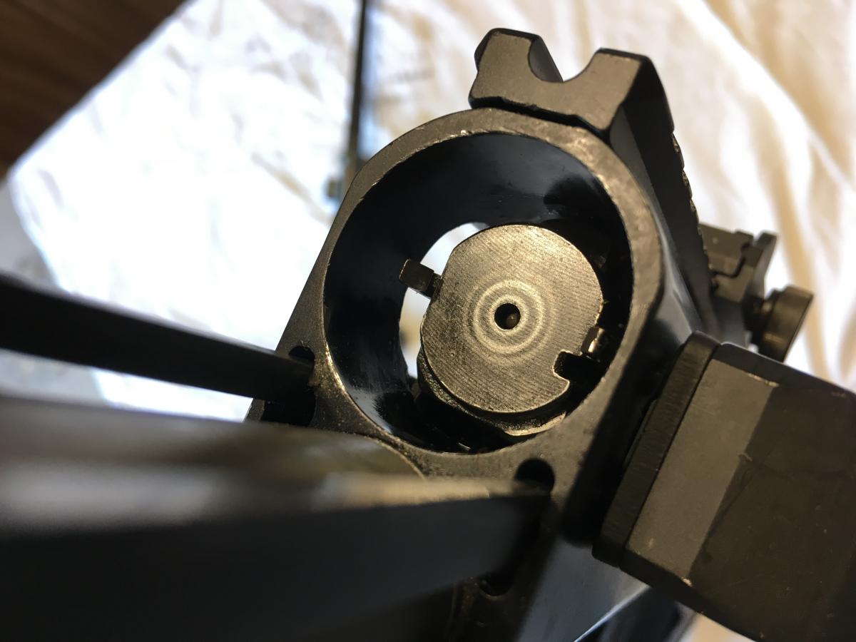 Сделан крон с мушкой под складную иглу от карабина Мосина (механизм, как у КМ) - что не выкосишь огнём - заколешь штыком! При желании вся эта приблуда снимается и используется штатная мушка.