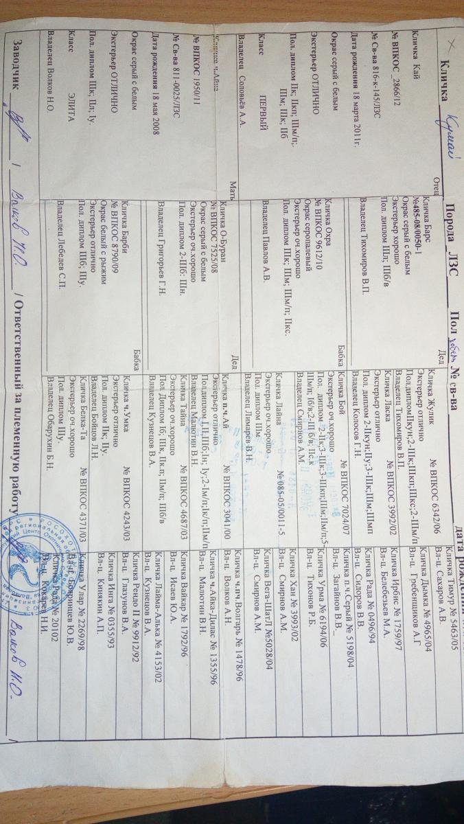 6. Все дипломы за рабочие качества с указанием по виду дичи: 3й К, 1й Б